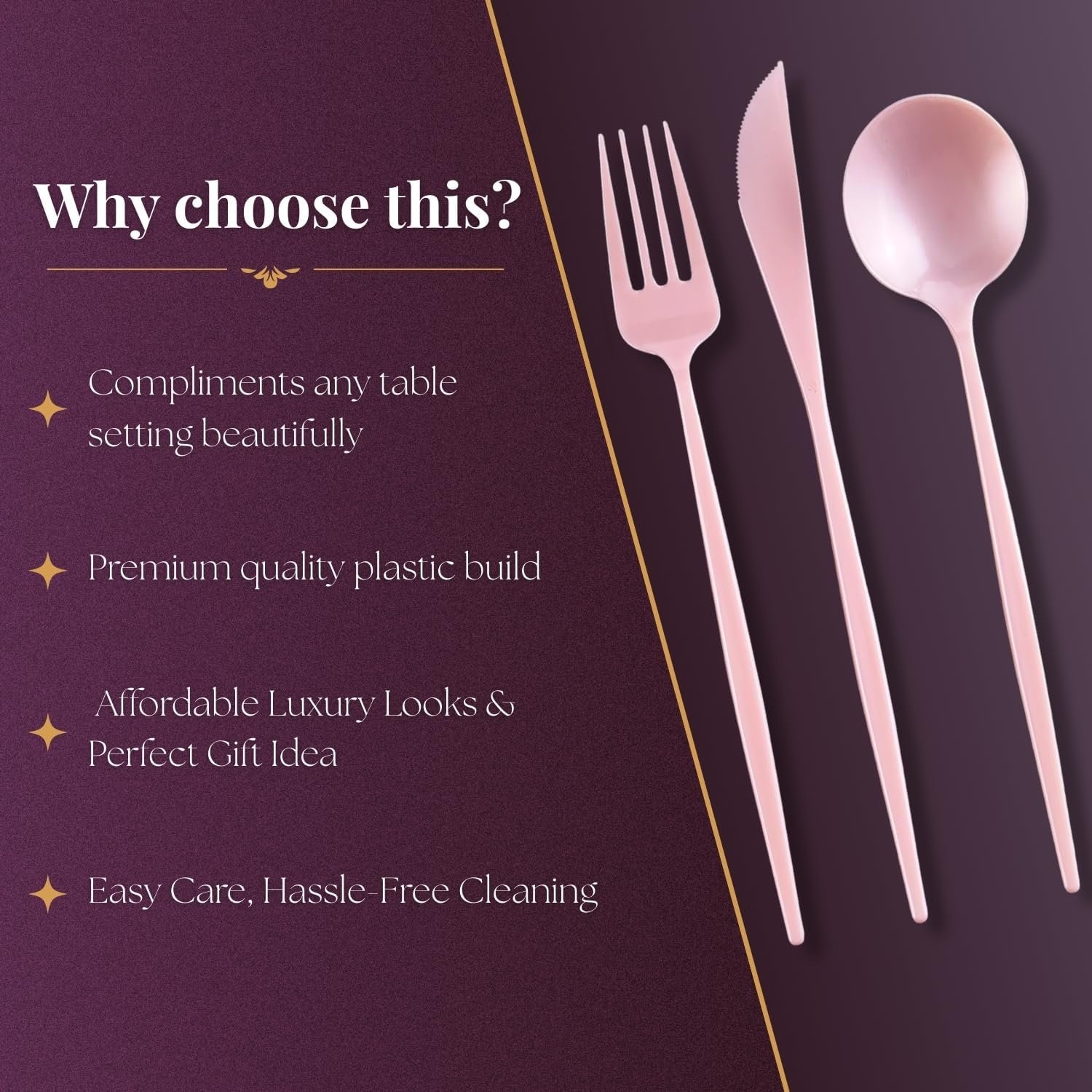 DISPOSABLE & CONVENIENT: Enjoy the beauty of fine flatware without the cleanup. Simply toss after use for stress-free hosting and easy cleanup.