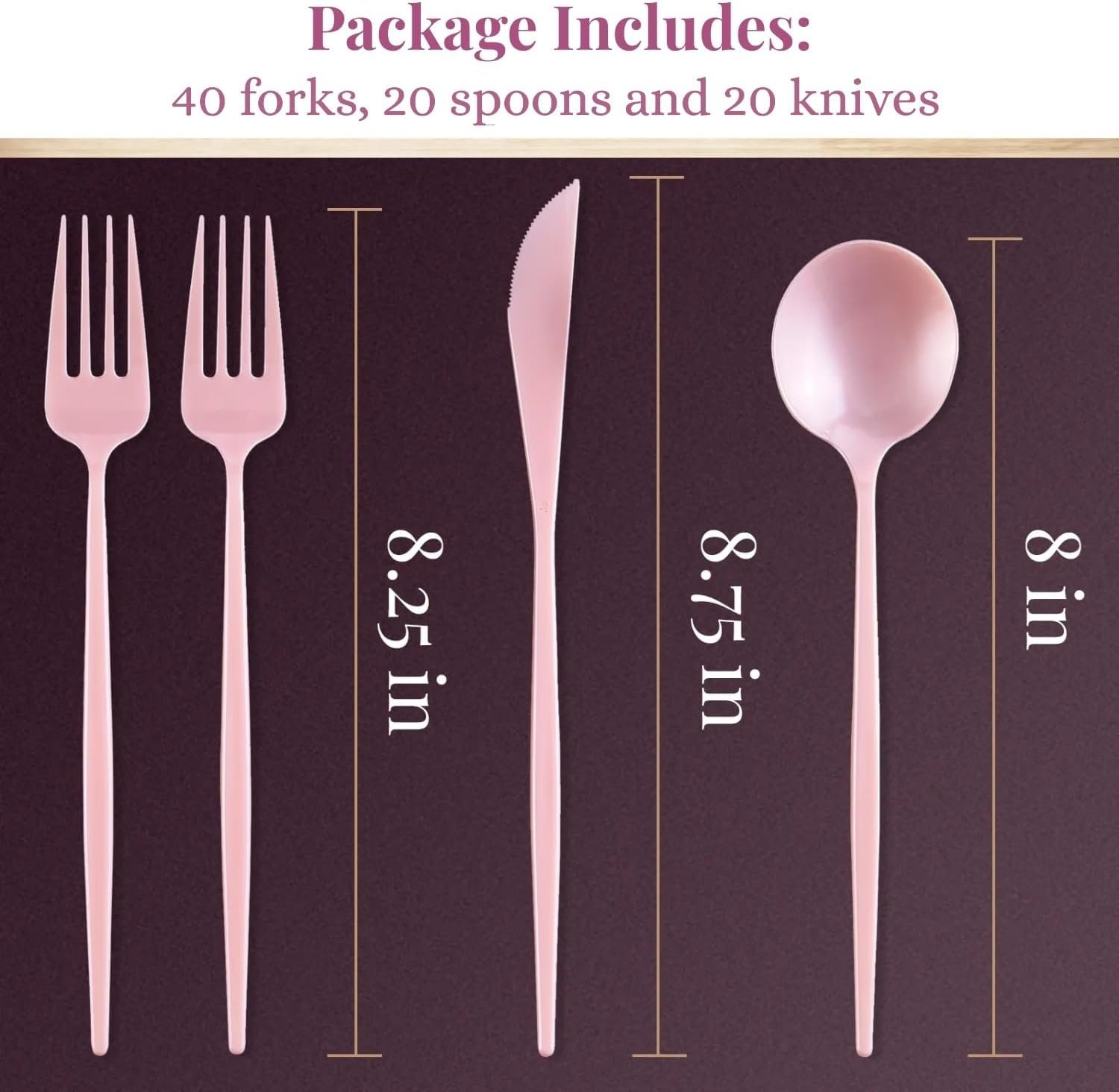 PACK CONTENT: Includes 40 forks, 20 knives, and 20 spoons, making it perfect for birthdays, weddings, baby showers, picnics, and more.