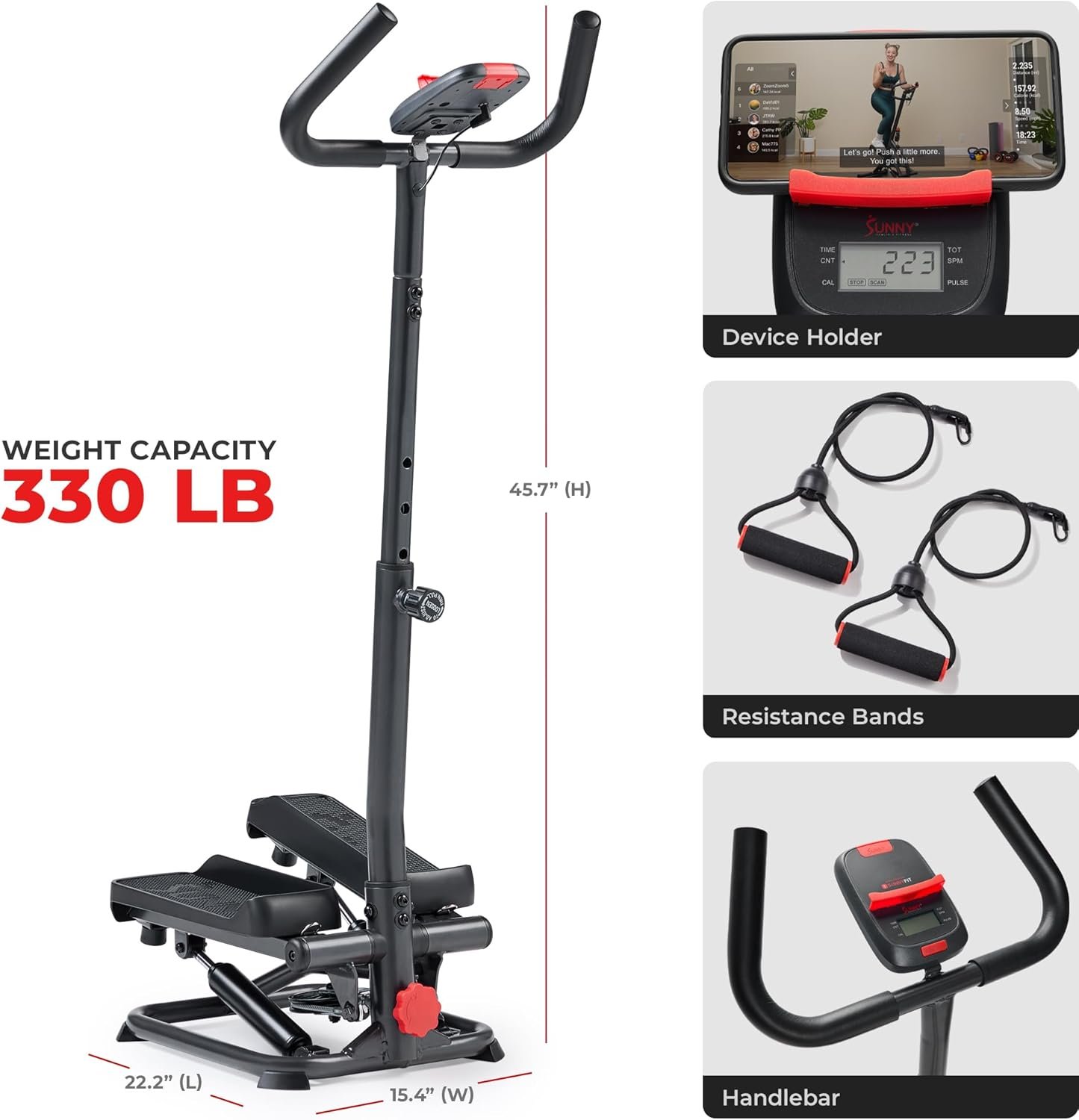 【COMPLETE BODY WORKOUT W/HANDLEBAR】The sturdy handlebar provides support and balance, helping you maintain proper posture & stability for a safe, effective full-body workout. Stepper supports up to 330 LB, accommodating a wide range of users.
