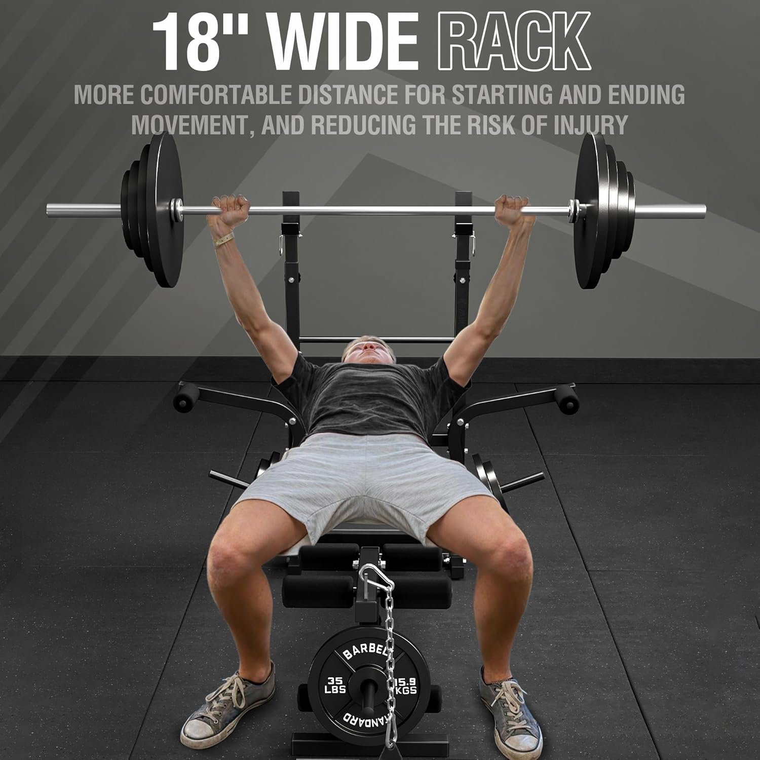 Solid and Stable – Crafted from premium tubular steel and boasting a widened feet base, Mikolo Olympic weight bench is designed for ultimate stability and durability, with a remarkable weight capacity of up to 900 lbs. It features a reliable adjustment and locking mechanism