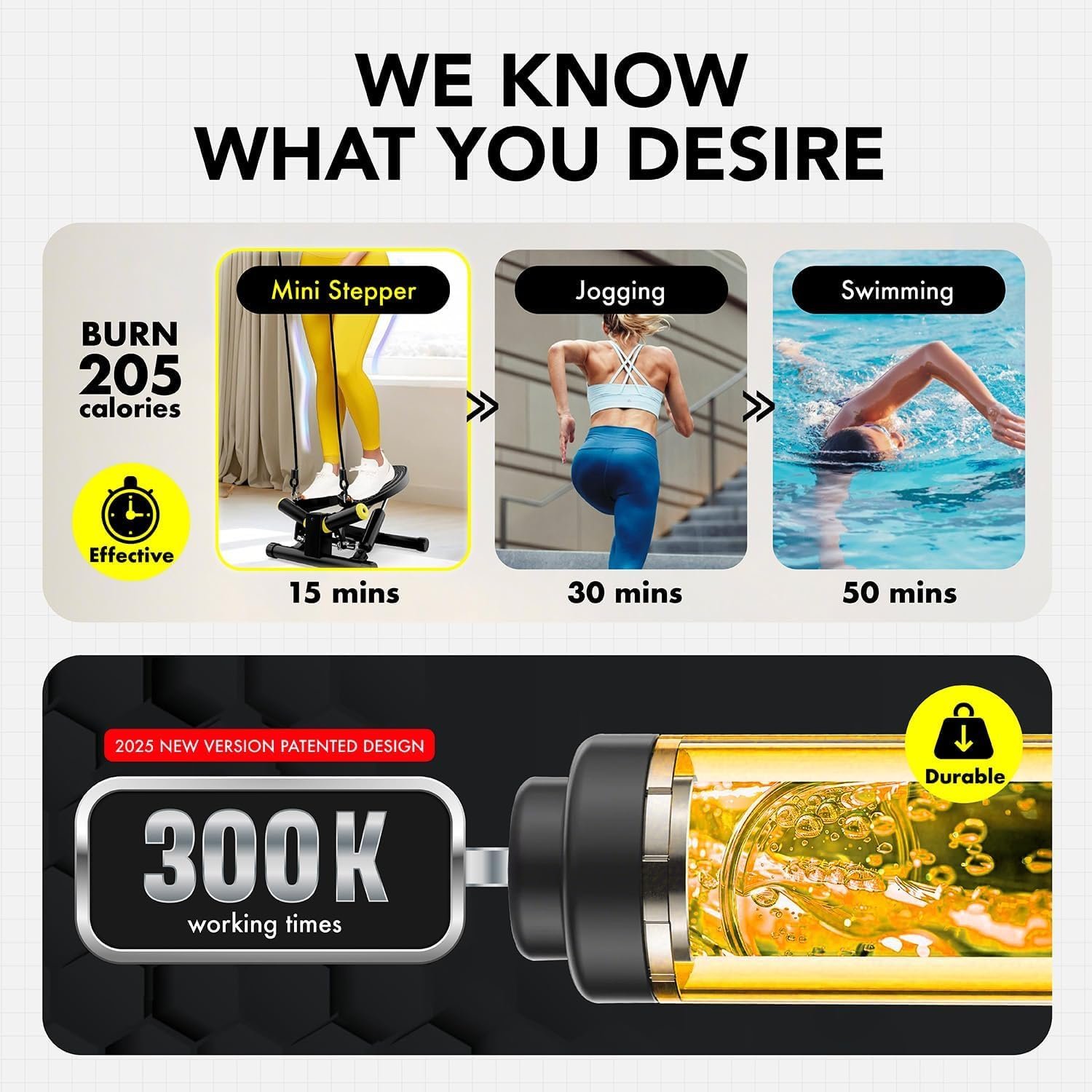 【Extremely Stability & 300LBS Weight Capacity】The mini stepper features a loading structure crafted from robust 1.5MM thick commercial steel, guaranteeing unparalleled stability and a weight capacity of up to 300LBS. Rest assured, you can step with confidence knowing the stepper is designed to handle heavy loads without compromising stability.