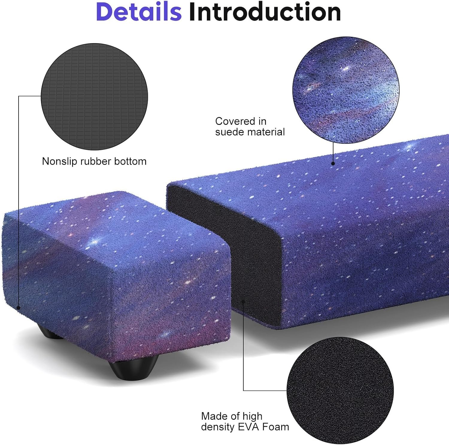Folding Gymnastic Equipment Stable & Comfort:Pine wood base + stainless steel hinged, not easily move or tip; very comfortable touching due to suede surface & elastic foam filling.