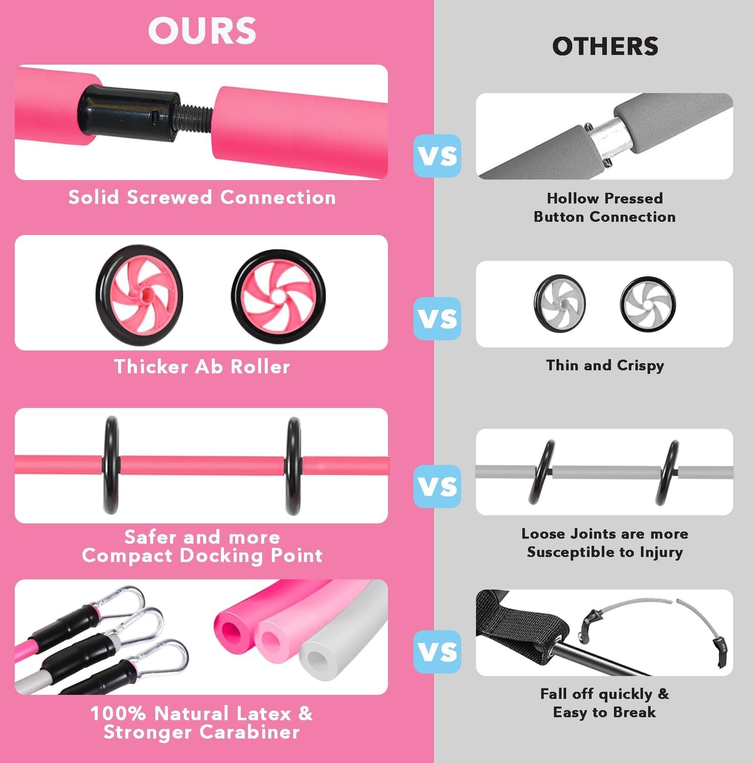 【Portable Home Gym】The upgraded Pilates bars is threaded connection, which can quickly complete the connection and disassembly of the rod, and the operation is very convenient, It won’t break like a button. The upgraded ab Roller is thicker,so it’s safer. The included portable bag allows you to easily store all the accessories of the multifunctional pilates bar kit and save a lot of space. You can take it with you when exercise outdoors or travel.