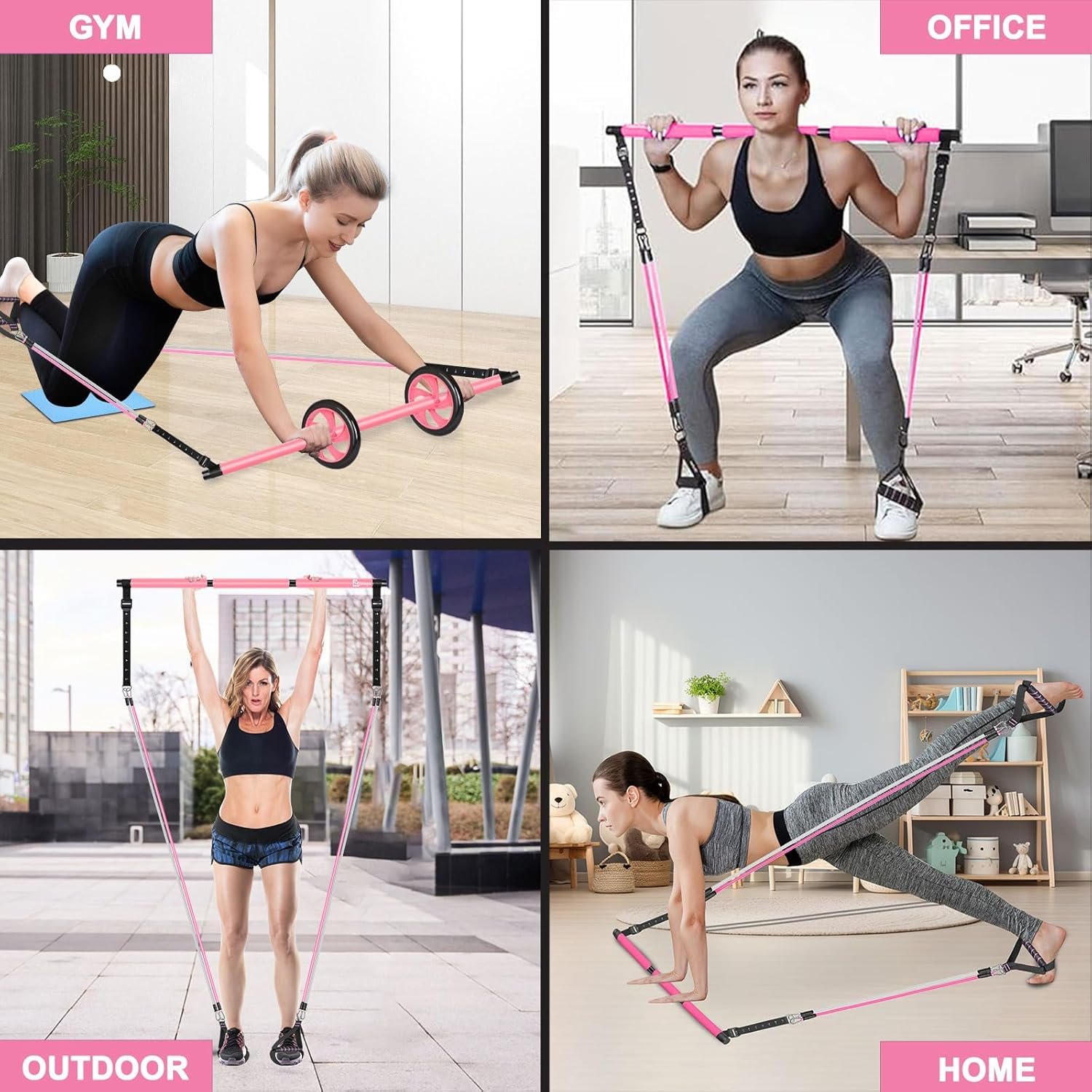 【Full Body Workout】Pilates bar set can be used in Pilates, stretching, yoga, strength training and other training programs to effectively exercise the ab, arms, legs, hips, waist, triceps and back. More than 30 exercises can be completed with different workout combinations, with the AB roller system, you can easily upgrade your abs with the cushioning protection of resistance bands, creating a perfect muscular line that no other Pilates bar can offer.