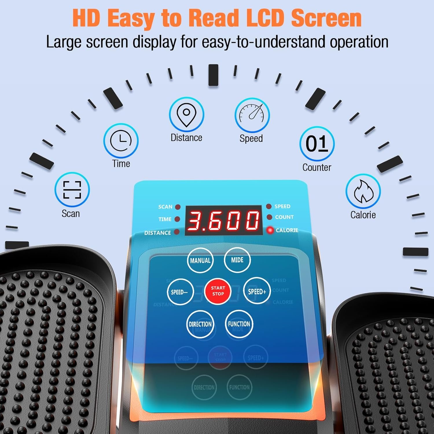 【Effortless Control & Real-Time Tracking】Stay active and healthy with Hoduio elliptical machine for home, featuring an LCD display and remote control. Track your speed, distance, time, and calories burned in real-time. The remote allows easy mode switching without bending over, reducing back strain. Experience a fatigue-free workout that delivers real results.