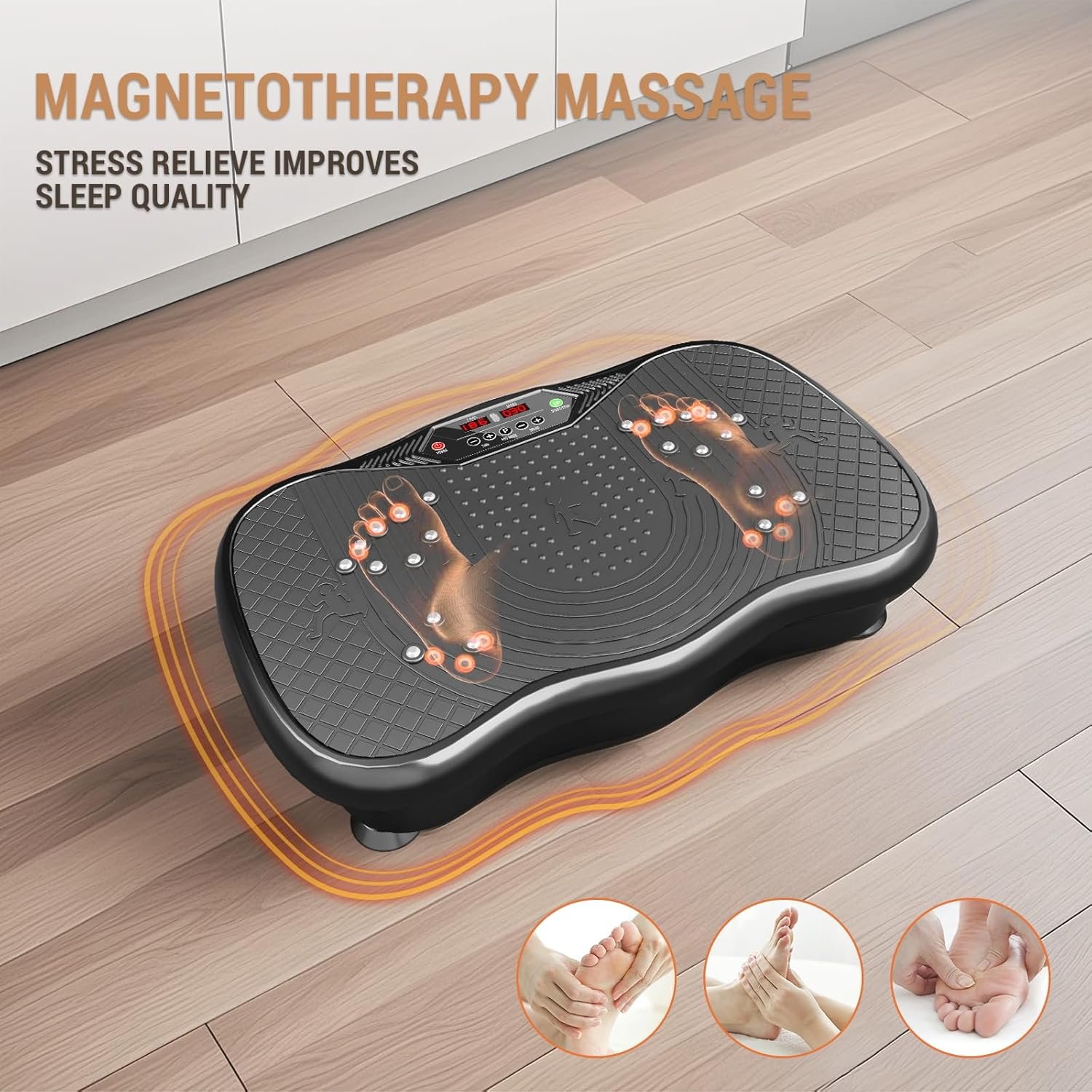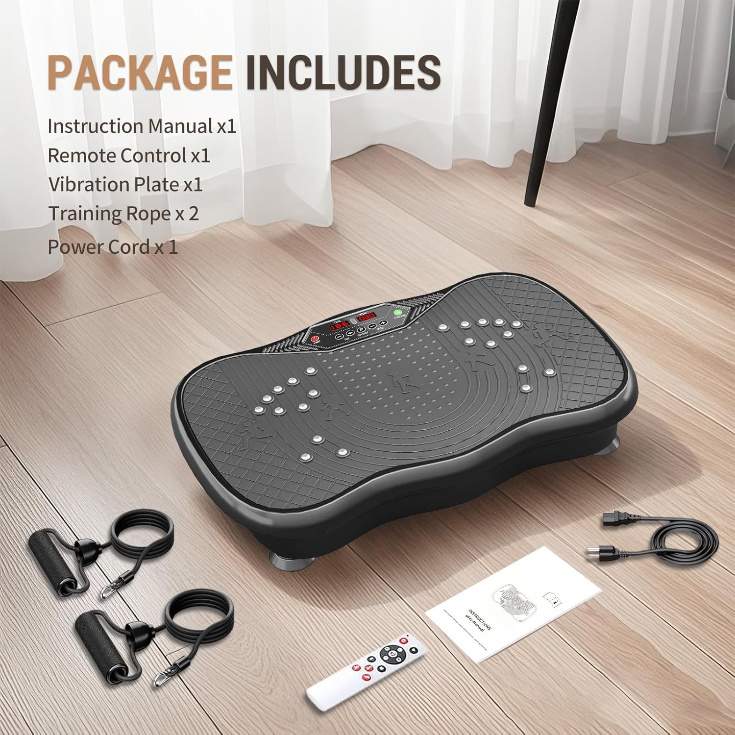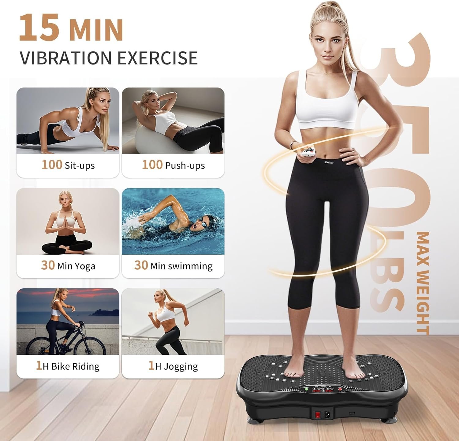 【DURABILITY AND STABILITY】Vibrating plate exercise machine features a quality ABS housings and four non-slip suction cups to assure stability and security Period intense workouts. Effectively reduces noises and has a maximum weight capacity of 330 lbs, Suitable for most fitness enthusiasts
