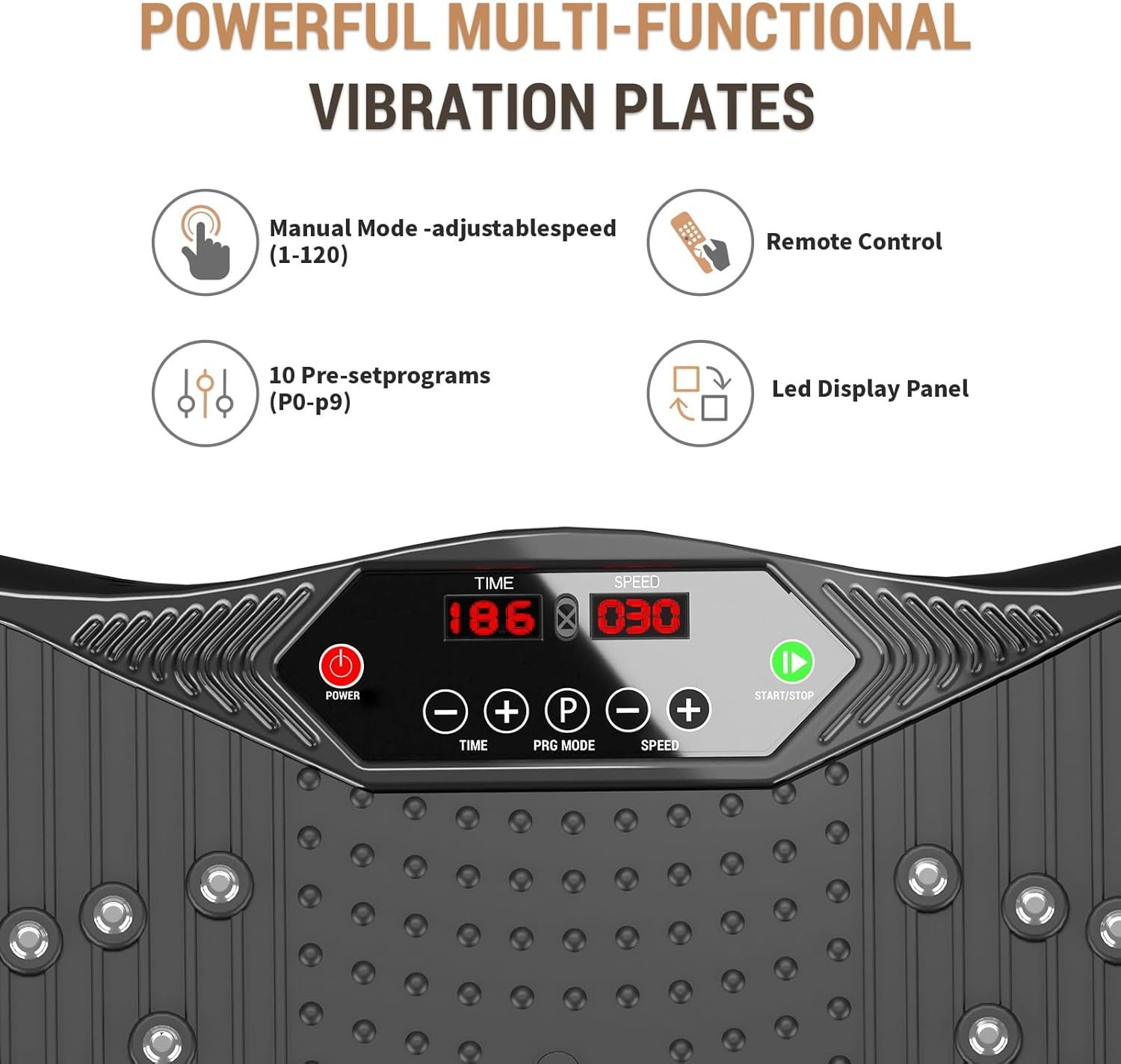 【EASY TO USE】The vibration plate offers two modes, automatic modes (P0-P9) the P button to start your workout. Manual modes allows you to adjust the vibration speed (1 to 120) and times(1-20) minutes, as well as multiple shortcut keys. Lets you try different vibration workouts