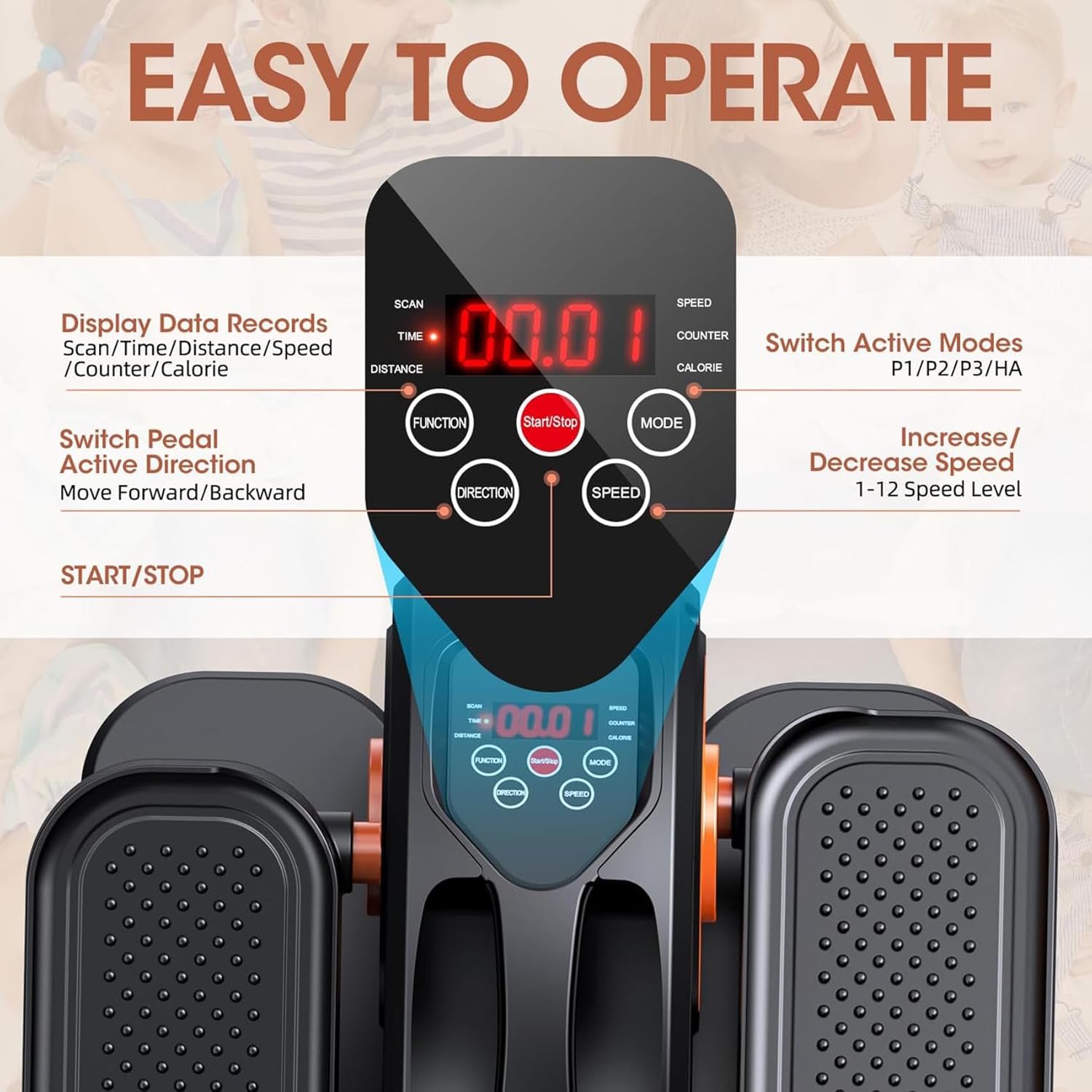 【2 IN 1 & Auto or Manual Modes】Unlike traditional exercise machines, GUGTTR under desk elliptical machine has Manual (12-level speed) & Auto (P1-P3) for your choice. Pedals can forward or backward to target different muscles