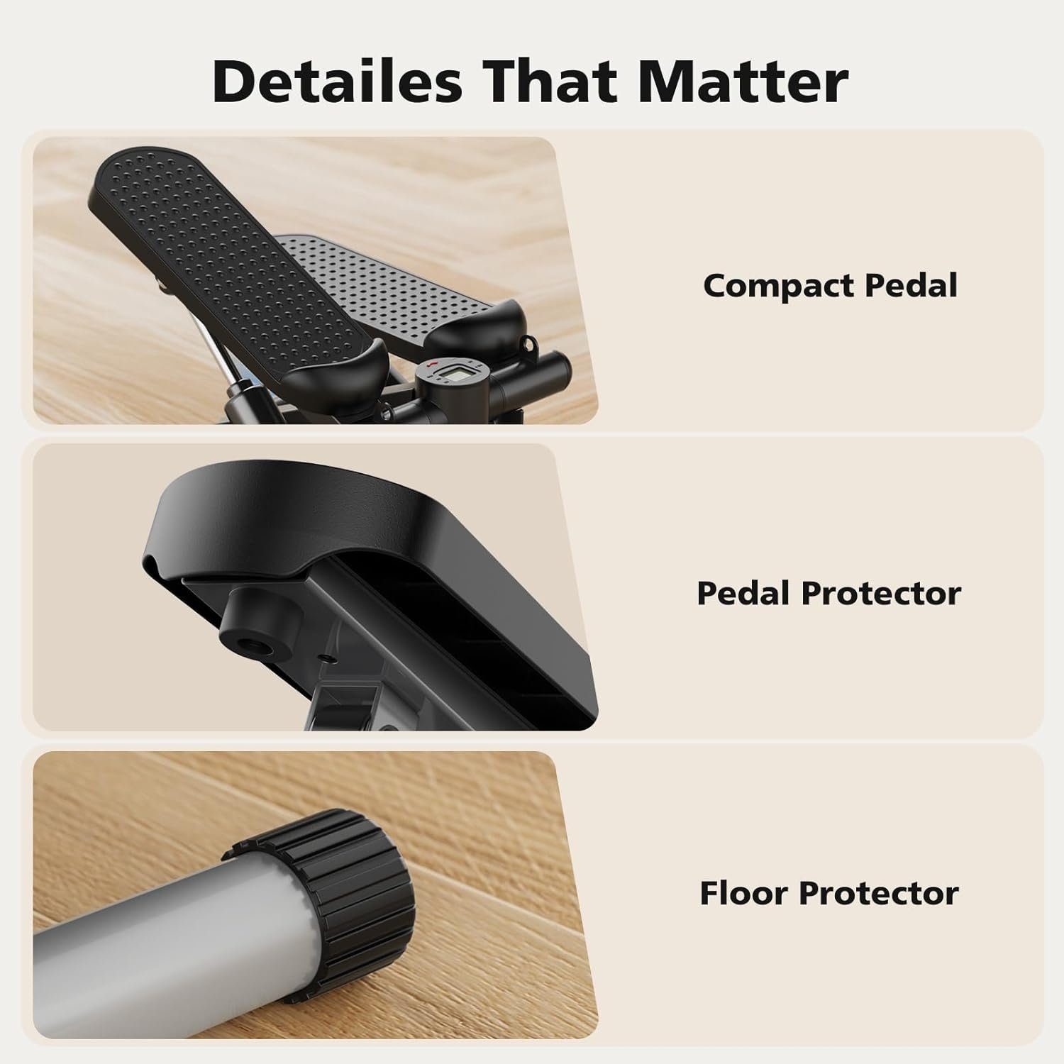 Perfect Portable Fitness Solution for Anytime & Anywhere with OLIXIS mini twist stepper with resistance bands! Elevate your fitness routine with the ultimate convenience and efficiency of the OLIXIS Mini Stepper for exercise at home. With its portability, versatility, knee-friendly design, full-body workout capabilities, ultra-quiet operation, adjustable intensity, heavy-duty construction, and real-time track data, this stepper is the perfect addition to any home gym. Perfect for those seeking a low-impact, high-intensity workout that fits seamlessly into their busy lifestyle, this compact portable stepper is ready to use straight out of the box, transforming any corner of your home into a personal gym.
