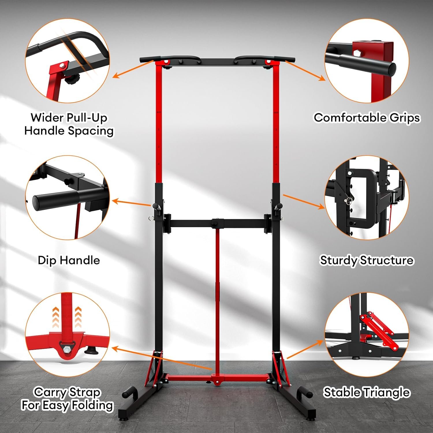 ONETWOFIT Foldable Power Tower Pull Up Bar Station, Multi-Function Adjustable Height Dip Station for Home Gym Workout, Strength Training Fitness Equipment, Pull Up Stand 360LBS