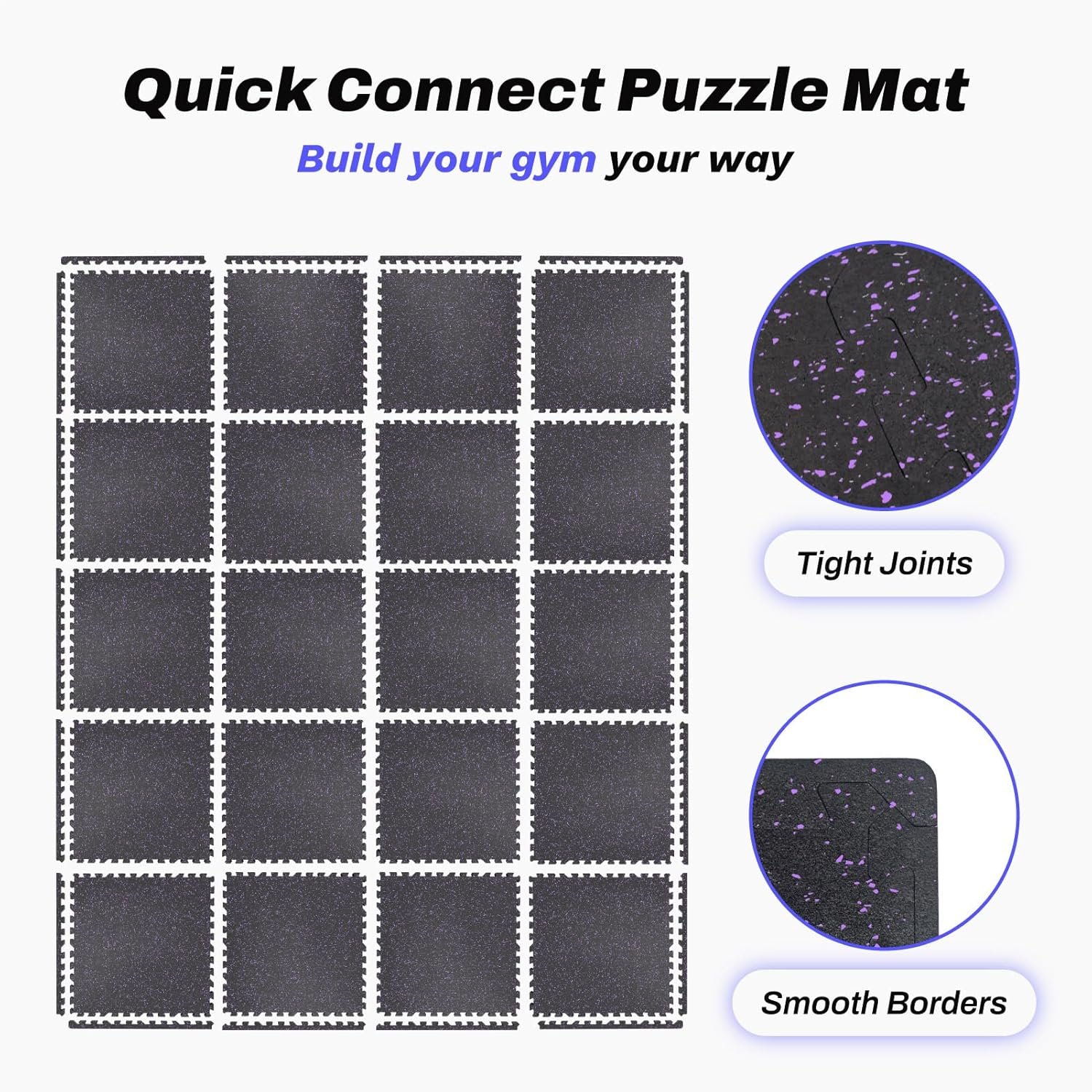 [Easy to Assemble and Detach]: 24 tiles (24″ x 24″ x 0.56″ each), covers 96 sq ft (8 × 12 ft). Upgraded larger interlocking locks provide a secure fit, preventing any separation during use, ensuring you can work out without concerns of shifting. Simple assembly and detachment make it effortless to set up your home gym.