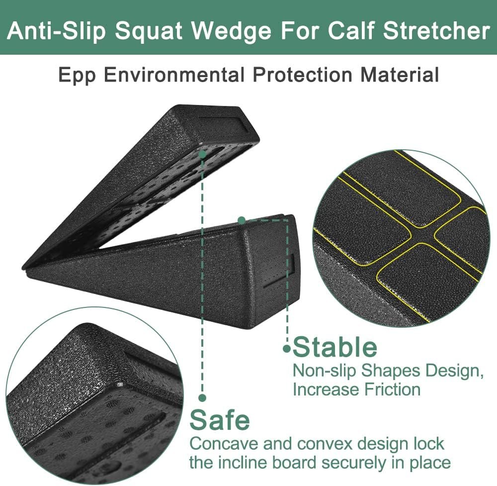 ※ PORTABLE & EASY TO CLEAN DESIGN : Our Calf Stretcher has a foldable design that is lightweight and easy to carry. They can be used in any combination as well as individually and are extremely lightweight for portability. It’s stain-resistant and quickly regains its shine just by wiping with a cloth and rinsing with water. Work out your legs and feet with this squat wedges for runners and fitness enthusiasts, it’s perfect for squats and will boost your workouts