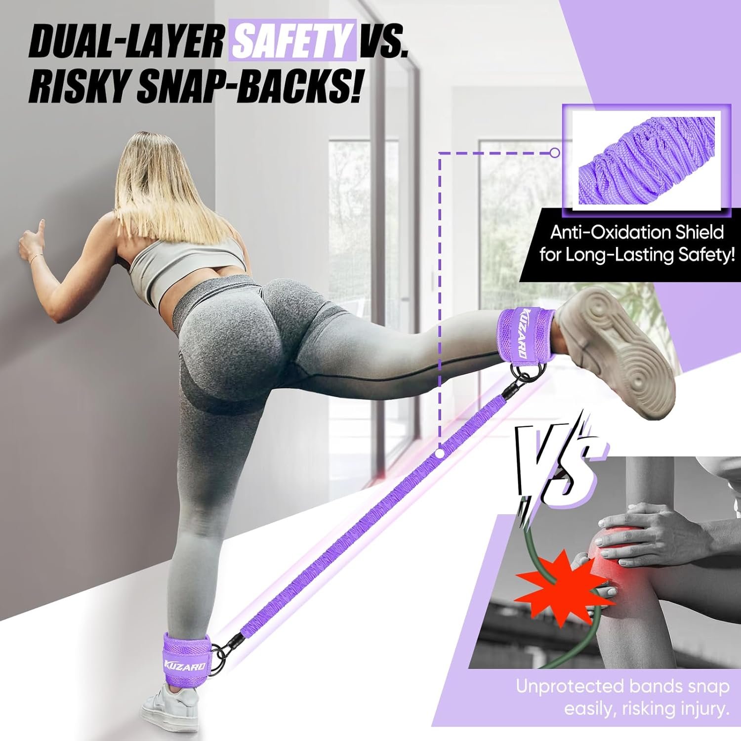 【DUAL-LAYER SAFETY DESIGN】Our ankle weights resistance bands feature a user-friendly safety sleeve design that prevents accidental snapping and ensures your safety during workouts. The innovative double-layer design protects the natural rubber Resistance Bands from air exposure, increasing durability by 100% compared to single-layer bands—for a safer, longer-lasting training experience.