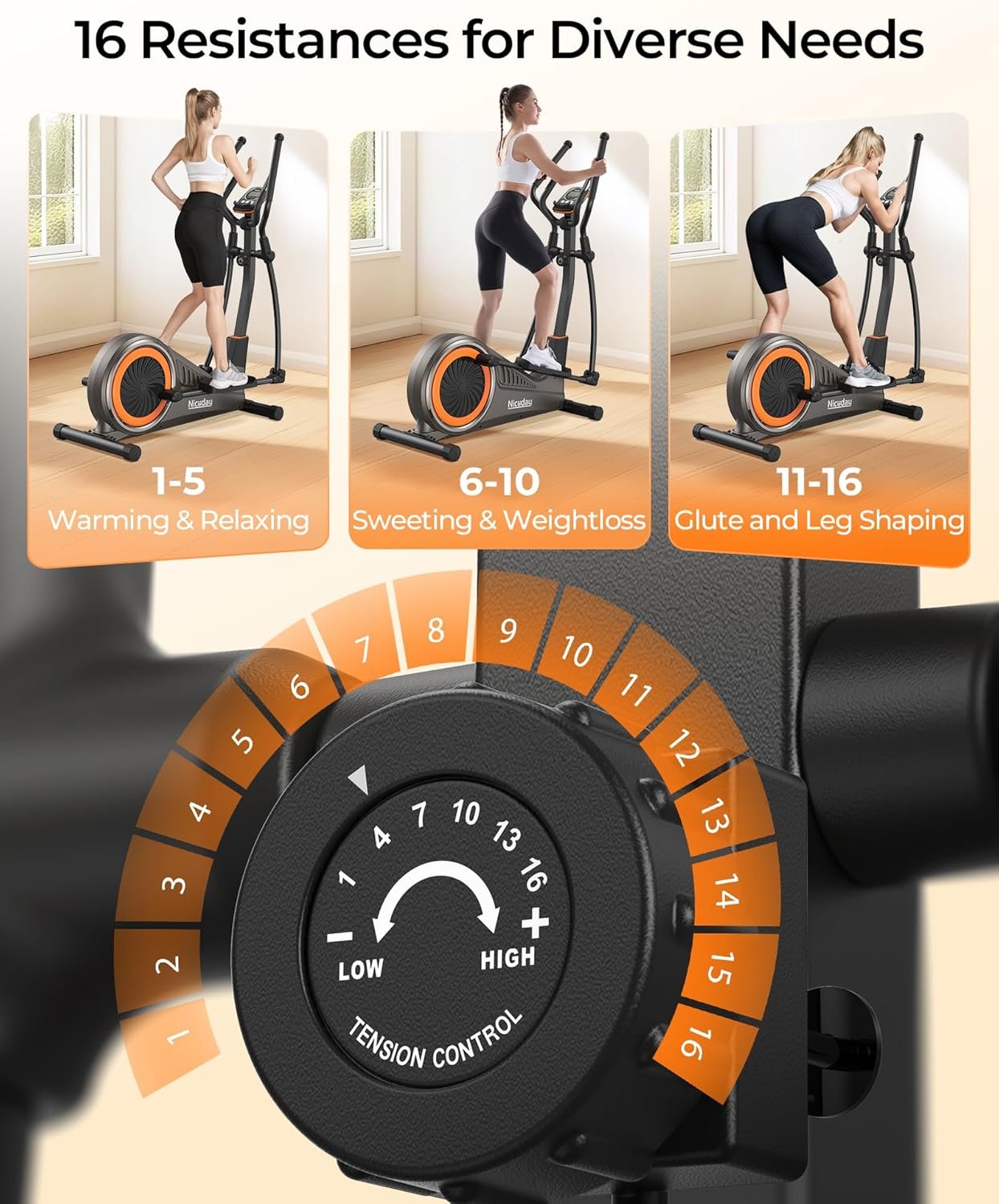 Minutes Assembly: Niceday elliptical trainer is designed with 90% pre-assembled; Almost all people can finish installation within 30 mins, very friendly to every home exerciser