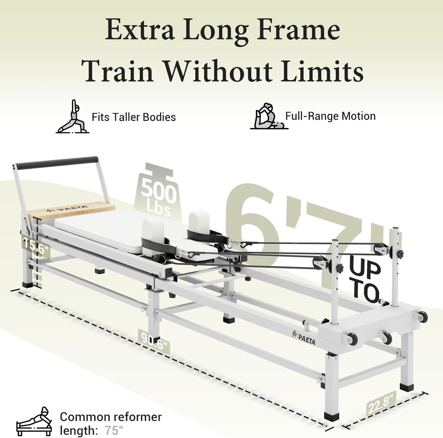 PAETA Pilates Reformer, 91″ Foldable Reformer Pilates Machine with Adjustable Reformer Heights, Pilates Equipment with Piano Wire Spings and Jump Boards