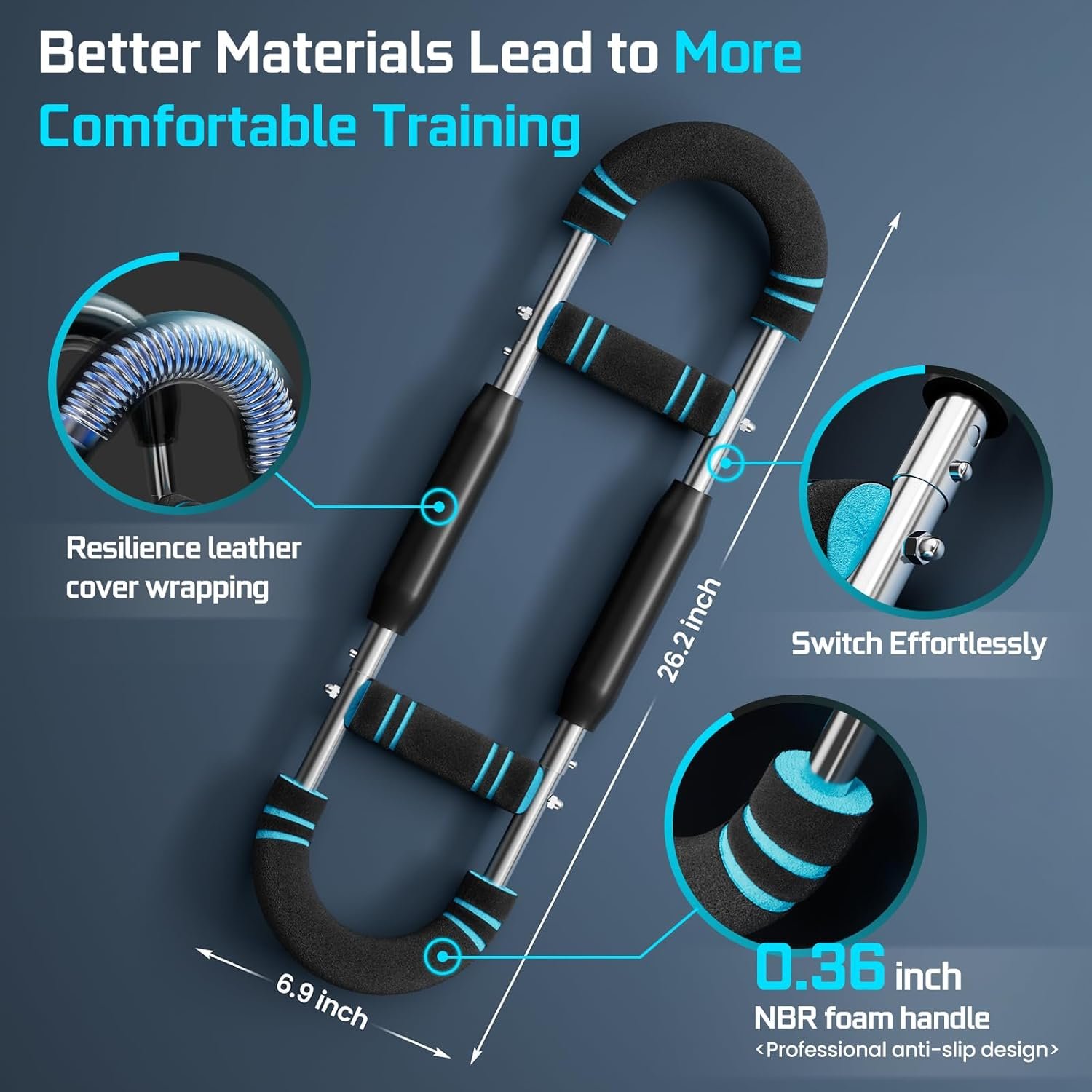𝐓𝐫𝐚𝐢𝐧 𝐒𝐦𝐚𝐫𝐭𝐞𝐫 𝐰𝐢𝐭𝐡 𝐎𝐮𝐫 𝐃𝐮𝐚𝐥 𝐀𝐝𝐣𝐮𝐬𝐭𝐚𝐛𝐥𝐞 𝐑𝐞𝐬𝐢𝐬𝐭𝐚𝐧𝐜𝐞 𝐁𝐚𝐫𝐬:Arm trainer four removable sleeves let you customize tension from 65/90/110lbs for progressive workouts, chest workout equipment textured grip foam grips and three layer precision steel ensure safe, stable performance every session