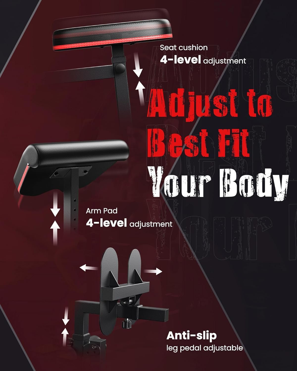 【Personalized Adjustment】The leg extension pedals can be adjusted in height or front-to-back position, as well as the multi-level adjustment of the butterfly arms and seat cushion, which can meet the needs of different heights, allowing you to experience tailor-made comfort and perfection fit.