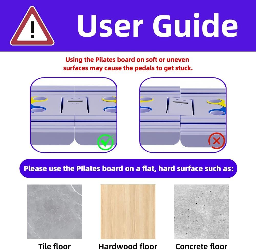 【Usage Tips and Advanced Support】Please ensure that the Pilates Reformer is fully extended before use. For best results, use on a flat surface such as tile or hardwood flooring. Avoid using on soft mats, as uneven surfaces may cause the pedals to get stuck at the folding points. If you have any questions or concerns, please feel free to contact our professional customer support team.