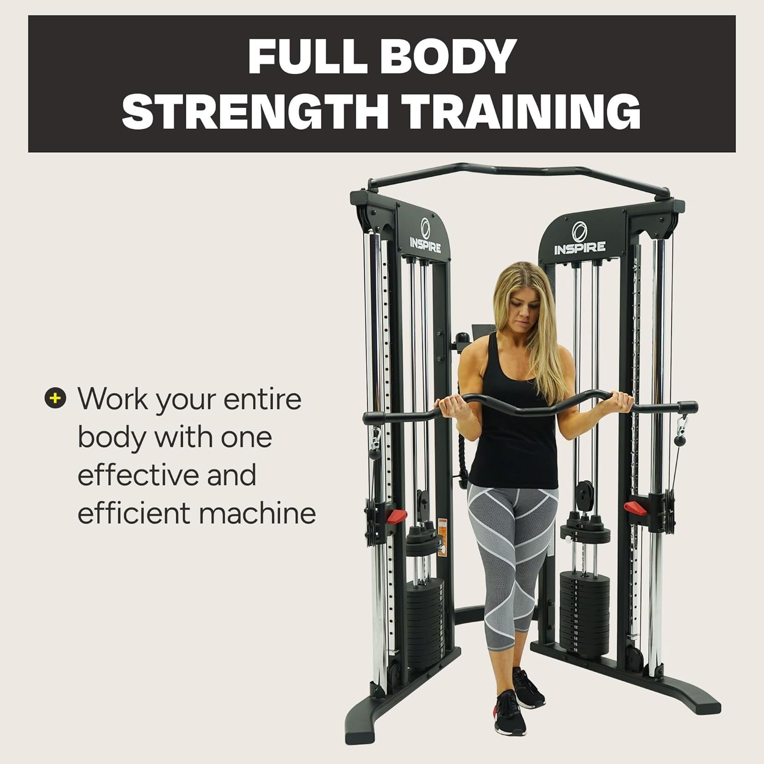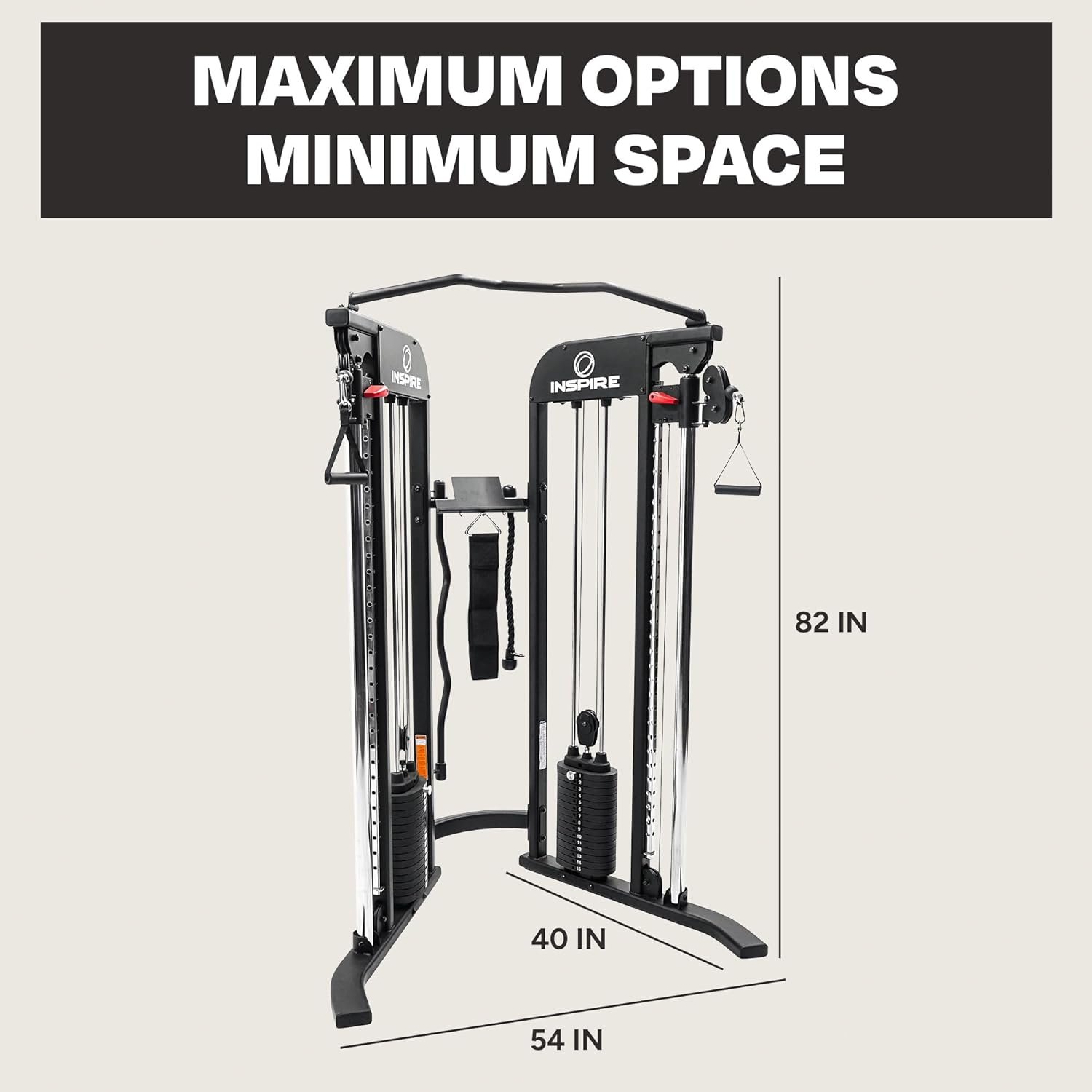 The Inspire Fitness FTX Functional Trainer is a versatile home gym machine that compact, durable and built to last. Constructed of heavy-duty steel and finished with a matte black powder coat, it’s one of the industry’s smallest footprints in a full functional trainer. 30 swivel pulley positions allow you to have complete freedom of movement in any direction and incorporate core, secondary, and stabilizing muscles. The FTX Functional Trainer includes 4 accessories including: Tricep Rope, pair of Deluxe D handles, Chin/Dip Belt, Curl Bar. Inspire Fitness has been constructing the best home & commercial gym equipment in the fitness industry for over 20 years.
