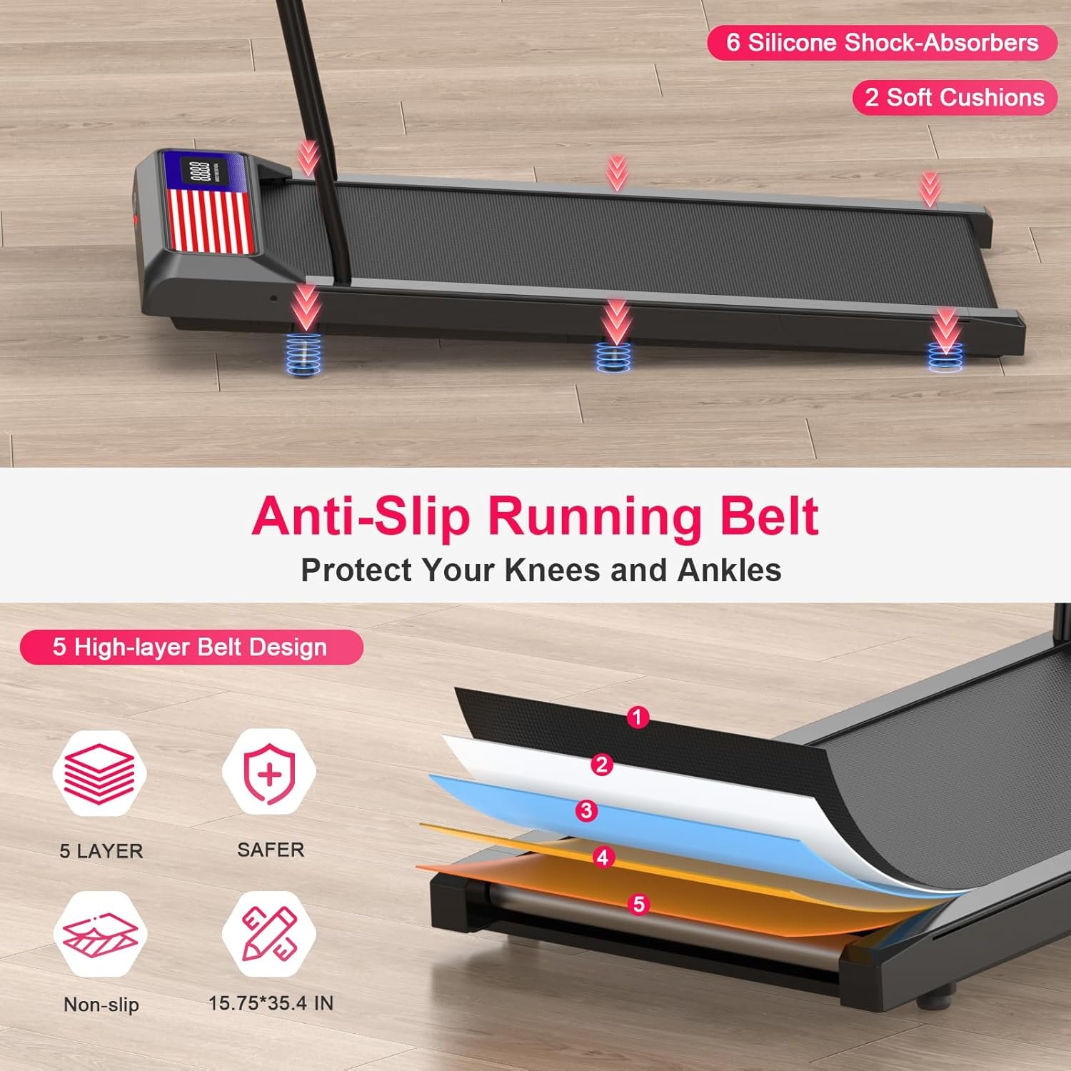 Shock-Absorbing Running Surface: The 5-layer anti-slip treadmill surface enhances knee protection, reducing joint impact by 40%; Ideal for daily fitness or rehabilitation, it’s key home gym equipment for safe, comfortable workouts with stable steps