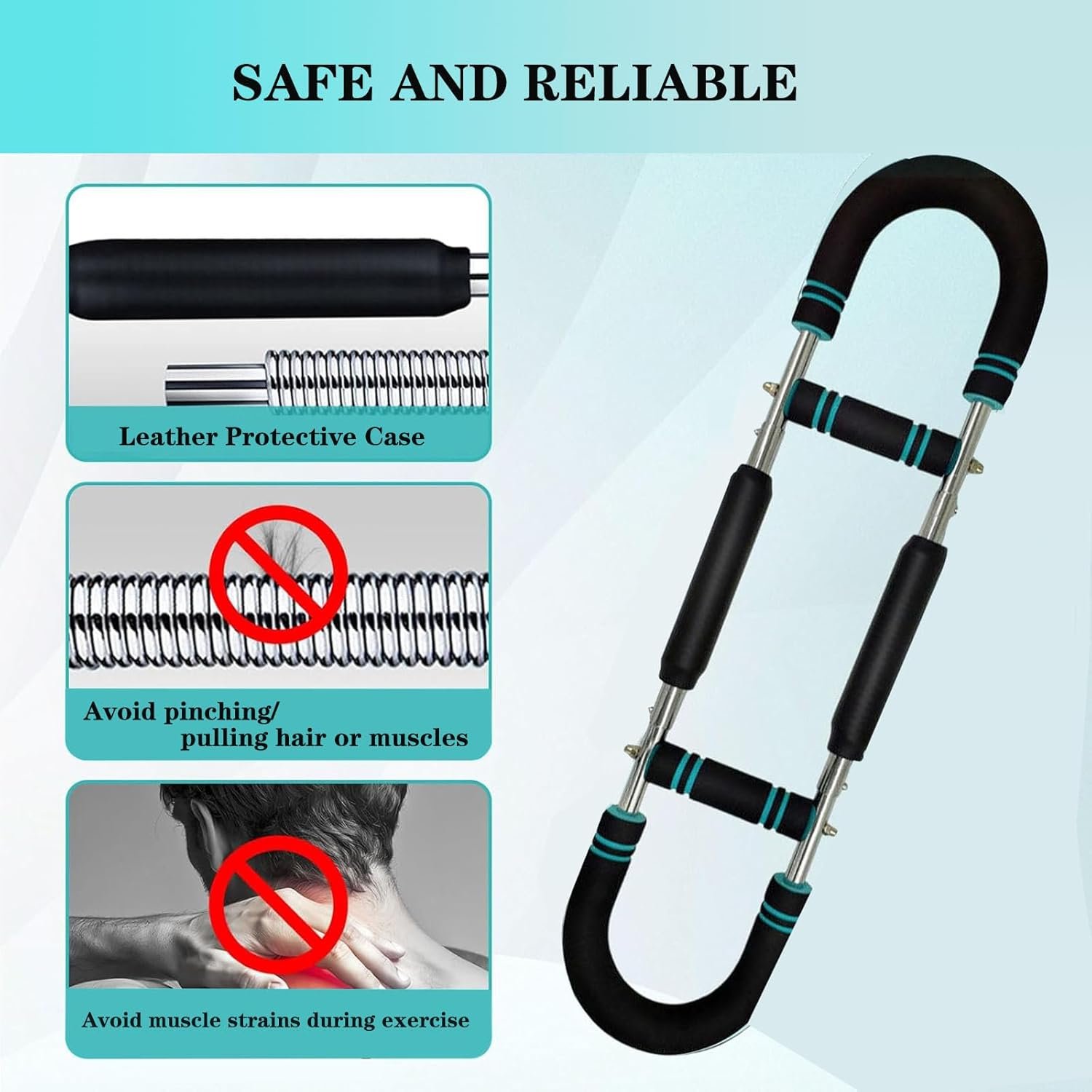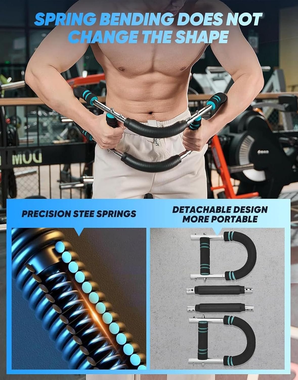 SAFETY-FOCUSED DESIGN – ERGONOMIC & DURABLE:Leather-wrapped muscle training bars prevent pinching, while high-strength steel springs resist deformation. Thickened anti-slip foam grips ensure secure control during intense sessions.