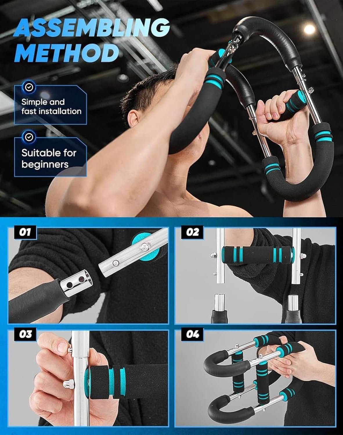 PORTABLE ARM TRAINER – GYM-QUALITY WORKOUTS ANYWHERE:Detach in seconds for travel. Use at home, office, or outdoors. Includes professional exercise guides for quick upper body routines – no space or time wasted.