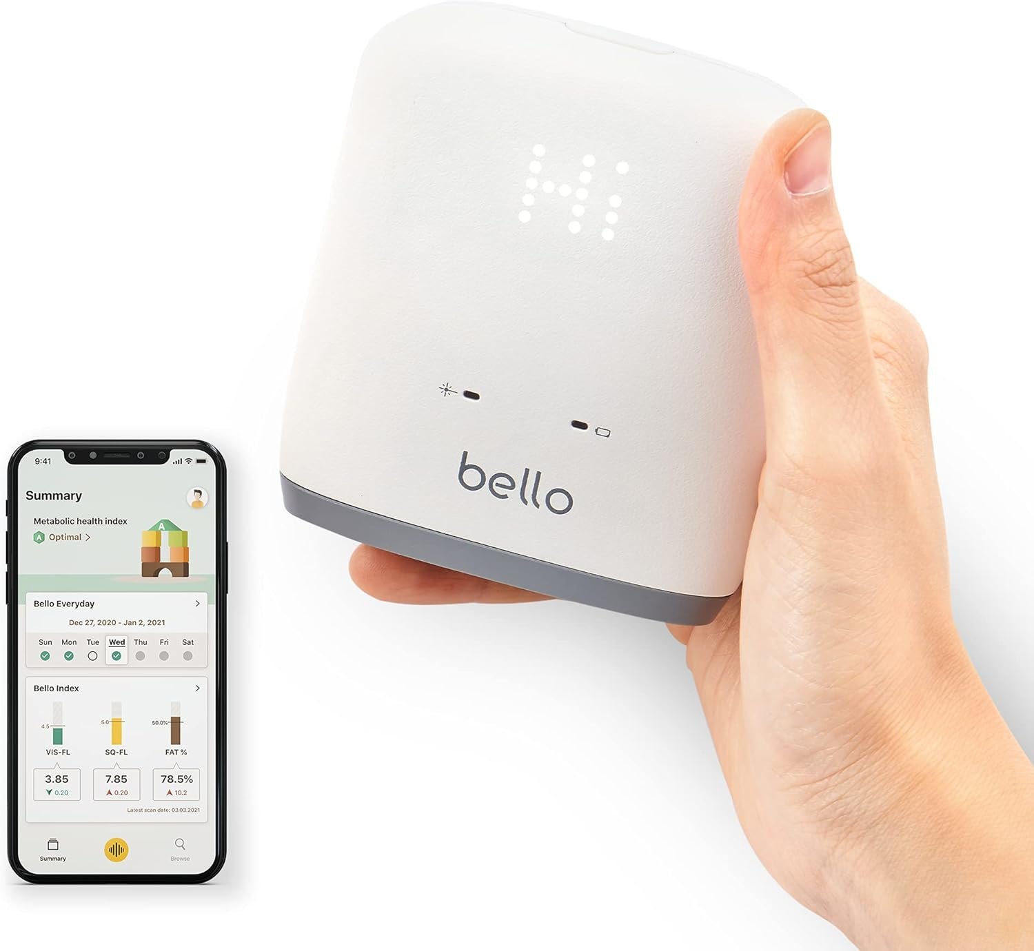 【Accurate Measurement】 Holistic view of your inner (visceral) and outer (subcutaneous) fat. Proprietary technology that utilizes NIR (Near Infrared Light) to a CT scan level accuracy. Superior to BIA smart scales, weight scales, and body fat calipers; bello’s readings are not affected by water intake and will give you precise results.