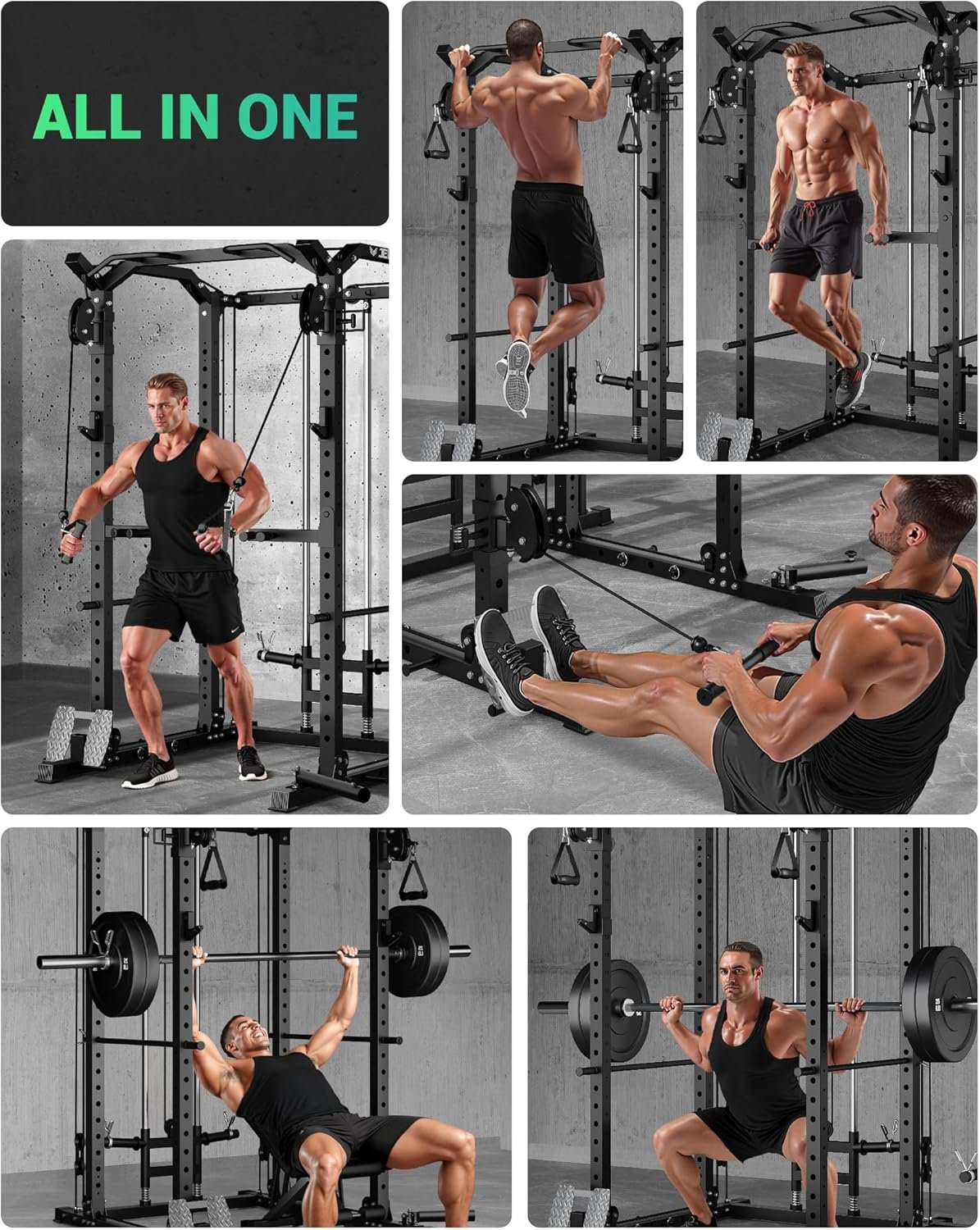 Build Your Dream Home Gym: Equipped the multi-function gym rack, which combines perfectly the Squat Rack, Weight Cage, and Cable Crossover Machine, and various additional accessories, you could do a total body exercise at home, such as Squat, Bench Press, Cable Flys, LAT Pulldown, Landmine Movements, Row, Dead-lifts, Bicep Curl, Tricep Extensions, Pull-ups, Chin-ups and more.They meet perfectly your needs for various workouts and the home gym storage.