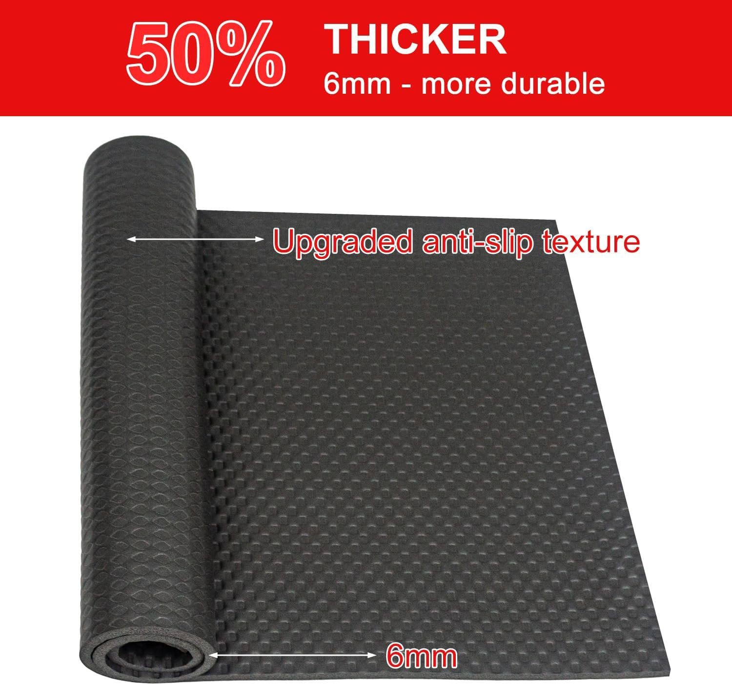Extra Thick & Protective: Our bike trainer mat is 6mm thick, which is 50% thicker than other mats on the market, providing superior cushioning to safeguard your floors from scratches or impact damage during intense workouts.