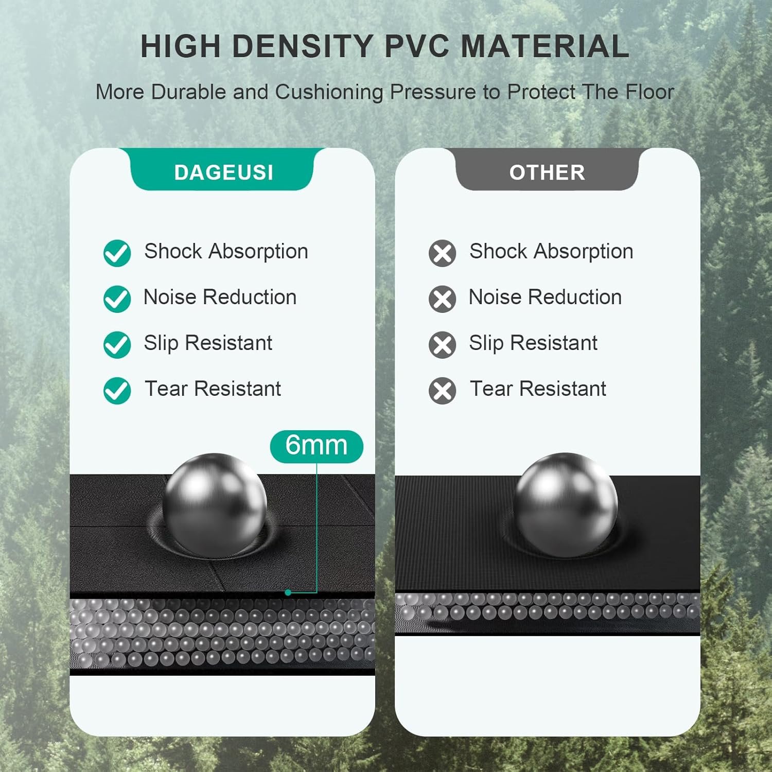 Superior Floor Protection & Shock Absorption: Our 1/4’’ thick PVC treadmill mat absorbs vibrations and reduces noise from treadmills, exercise bikes, treadmill mat for hardwood floors and other heavy exercise equipment. It’s the perfect floor mat for treadmill on wood floor, acting as a essential treadmill mat for hardwood floors to prevent scratches, scuffs, and damage. It also functions as an effective sound deadening mat for exercise equipment and provides anti-fatigue support, making it ideal for protecting any surface, including a treadmill mat for carpet or hardwood.