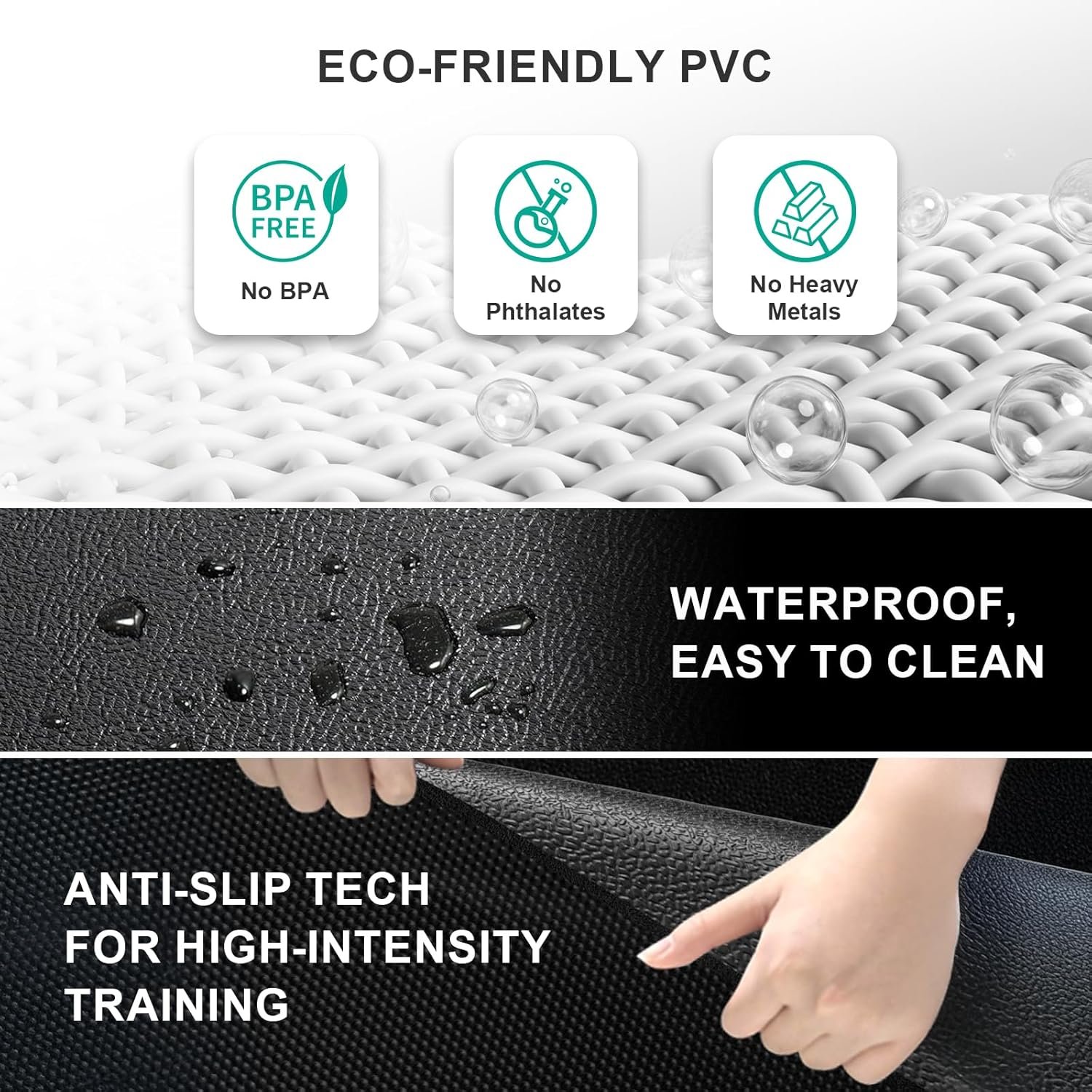 Premium Black PVC Construction & Durability: Crafted from heavy-duty, non-toxic materials, treadmill matt for carpet, this home gym floor protector mat is built to last. The waterproof, sweat-resistant surface of this plastic mat for carpet exercise equipment resists tearing and cracking, ensuring long-lasting hygiene and unparalleled floor protection. It’s a durable mat to put under exercise equipment that withstands daily wear and tear.