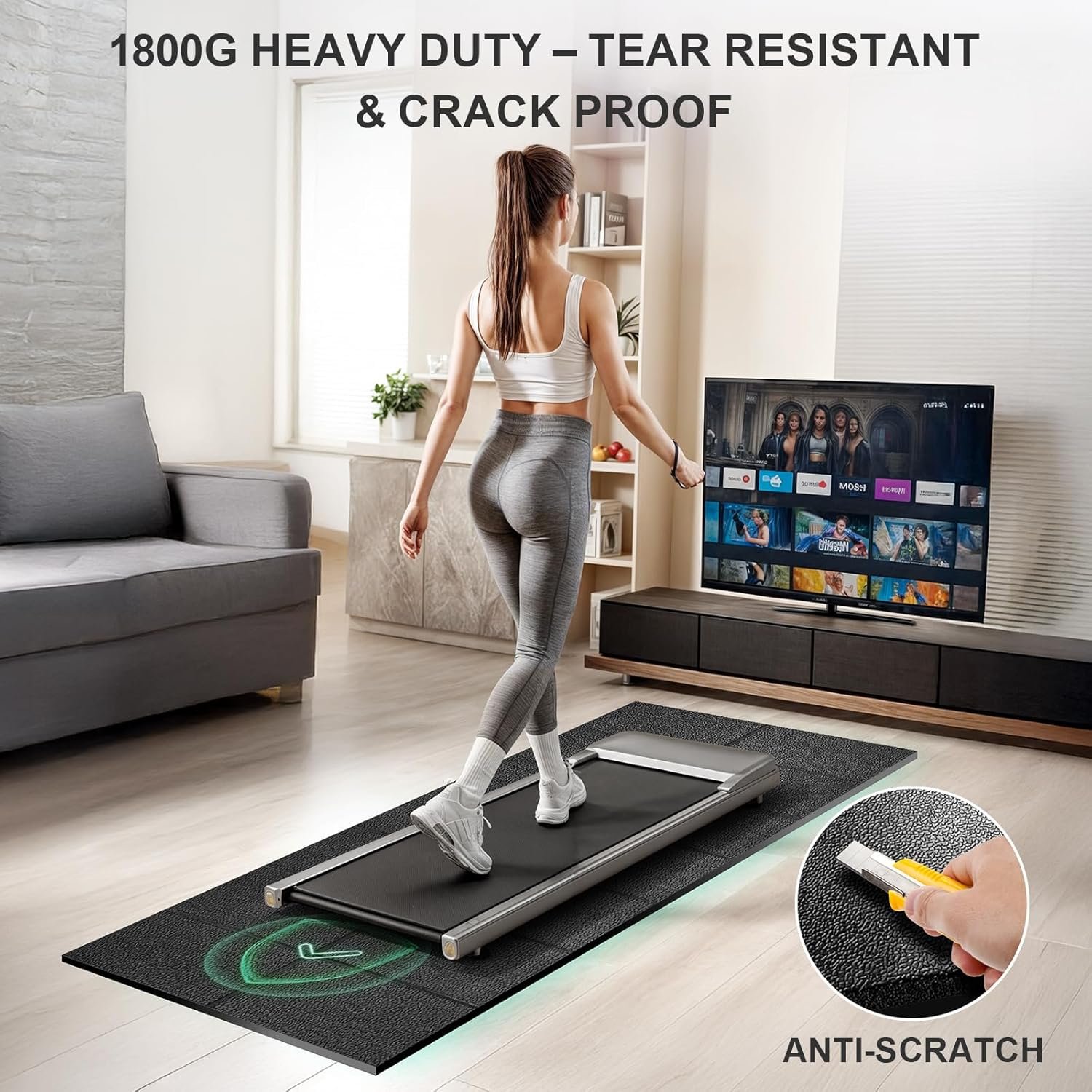 Anti-Slip Stability for Safe Workouts: Engineered for safety, treadmill mat for carpet,this mat for treadmill features a textured non-slip surface and a reinforced bottom grip. The patterned bottom grips floors tightly, ensuring your treadmill walking pad or portable treadmill stays firmly in place with no more shifting or sliding. This provides critical stability, making it a reliable workout mat for under treadmill and a secure pad for treadmill on carpet noise reduction during even the most intense routines.