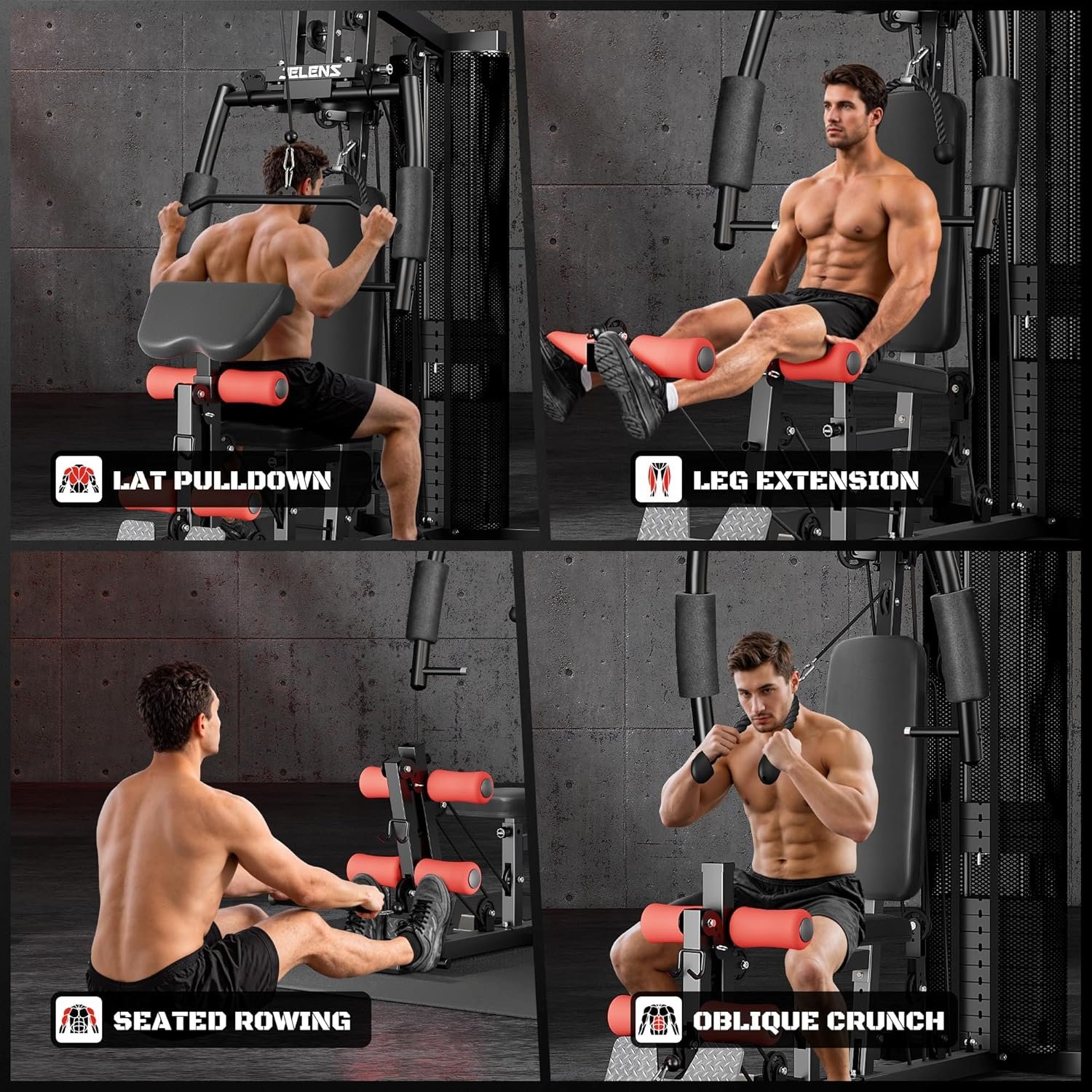 【All-in-One Home Gym】With just JELENS home gym system, you can unlock almost all fitness movements, including leg stretches, low row, seated row, chest flys, chest press, calf training, back extension and so on, saving space while achieving exercises for various muscle groups. Equipped with 11+1 weight plates at the same time, with a total weight of 150LBS, you can customize your exercise plan according to your own needs.