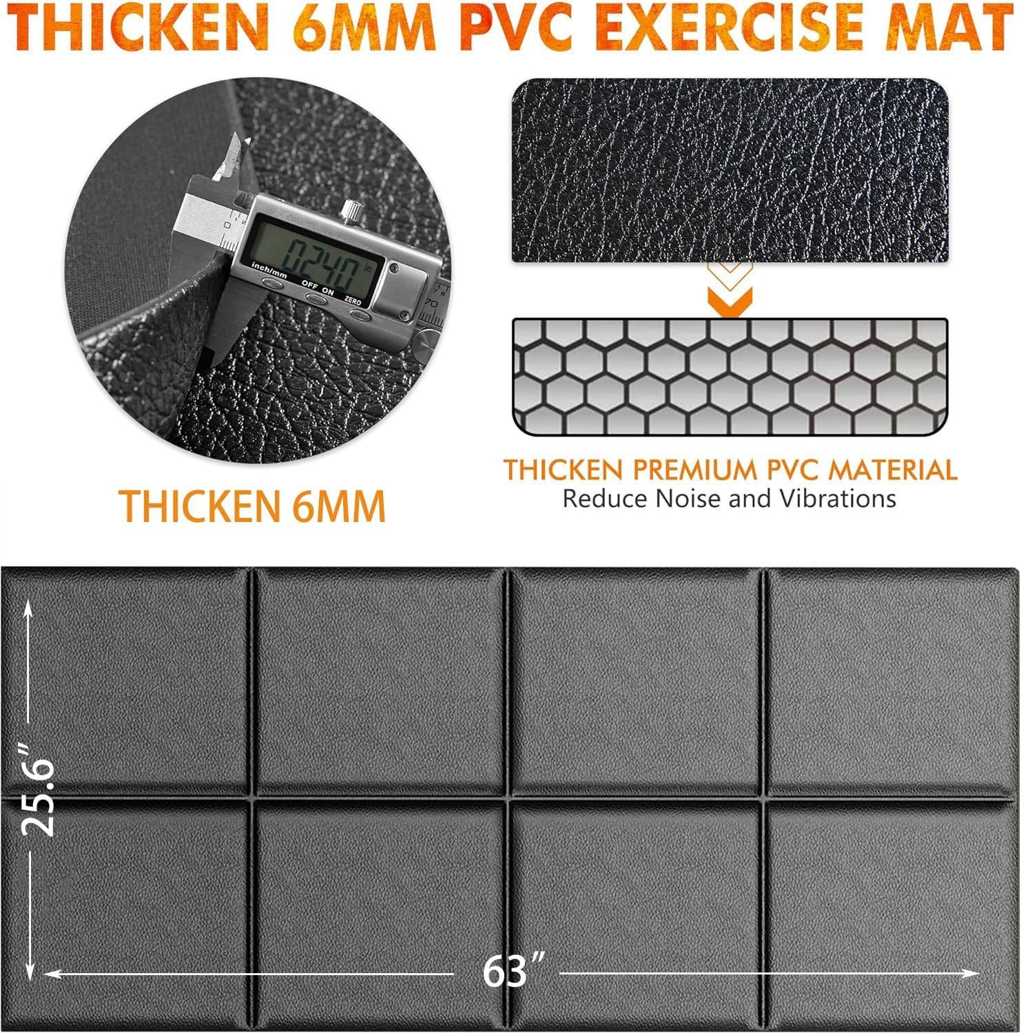 This 6mm thick high-density PVC exercise mat provides exceptional comfort and support for your workouts. The high-density PVC material ensures durability and stability while offering excellent cushioning, effectively reducing vibrations and noise caused by friction between the floor and fitness equipment.