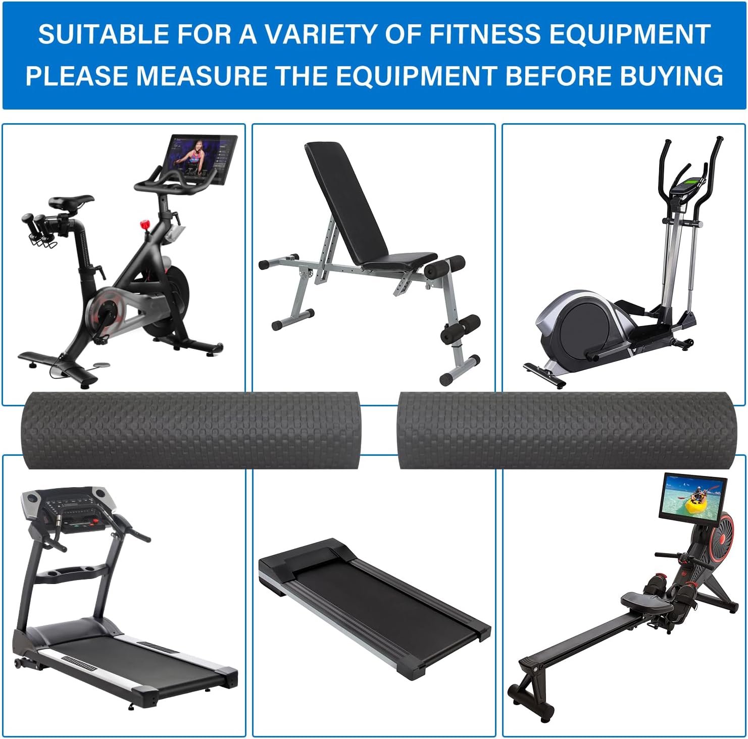 Exercise Equipment Partner: The 36*12 inch treadmill mat for carpet is thickened to meet your usage needs. Our bike mat is compatible with a wide range of fitness equipment, including treadmill, rowing machine, elliptical machine and stationary bike. NOTE: Mat only, machine not included.
