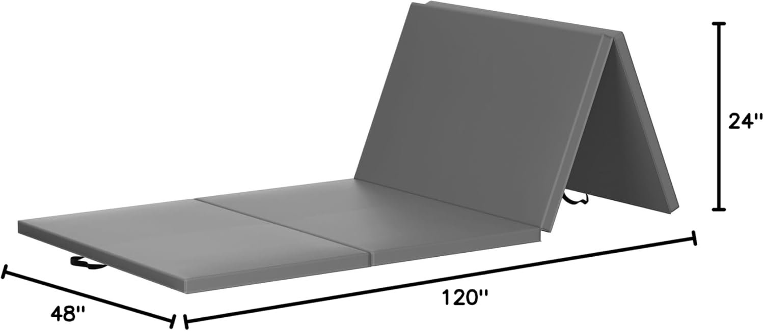 Versatile Exercise Mat: Gray 4-panel 10 ft. x 4 ft. x 2 in. folding mat for gymnastics, yoga, Pilates, aerobics, martial arts, and more; offering a safer, cushioned surface for a variety of workouts
