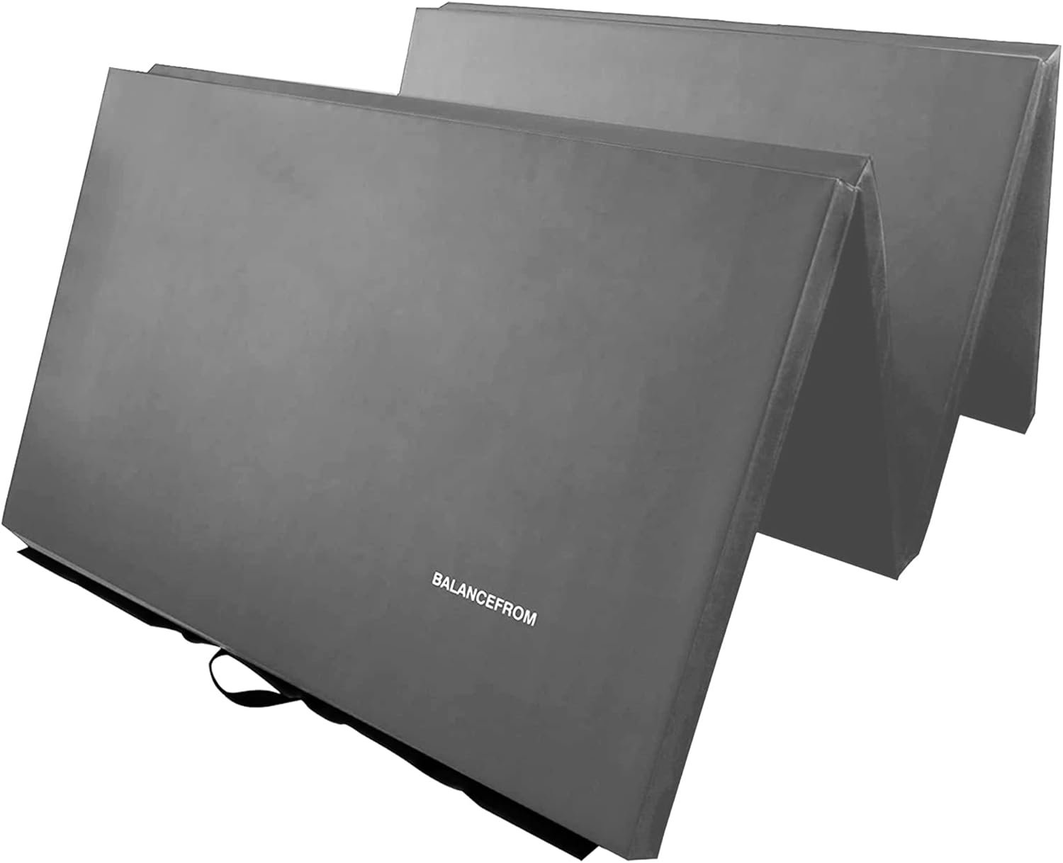 Bring comfort, safety, and versatility to every workout or practice session with the BalanceFrom Folding Gymnastics Mat. Measuring 10 feet long by 4 feet wide by 2 inches thick (120 x 48 inches), this extra-large training surface is made for tumbling, yoga, Pilates, light aerobics, martial arts, stretching, and more. The thicker 2-inch depth is filled with firm padding that cushions and supports joints, helping to safeguard your knees, back, elbows, and spine during high-impact movements. Designed for security, the double-sided, non-slip vinyl surface keeps the padded mat firmly in place and resists moisture, making cleaning it quick and easy. Reinforced stitching adds durability and enhanced strength during daily use. With hook-and-loop strips on all four sides, you can securely connect multiple BalanceFrom 10’x4’x2” mats together, creating a larger workout or tumbling area customized to your floor space. When training is over, the 4-panel foldable design reduces this exercise equipment accessory down to 4 feet long by 4 feet wide by 8 inches thick (48 x 48 inches). Built-in carrying handles make transport simple, whether moving it around indoors, taking it to the garage, or bringing it to the gym or studio. Lightweight at only 15 pounds, its compact size is easy to move, store, and take on the go. Whether you’re building a home gym, outfitting a studio, or providing safer flooring for activity and play, the BalanceFrom 10ft x 4ft x 2in All-Purpose Folding Gymnastic Mat offers the functional blend of comfort, portability, and durability for adults and users of all ages.