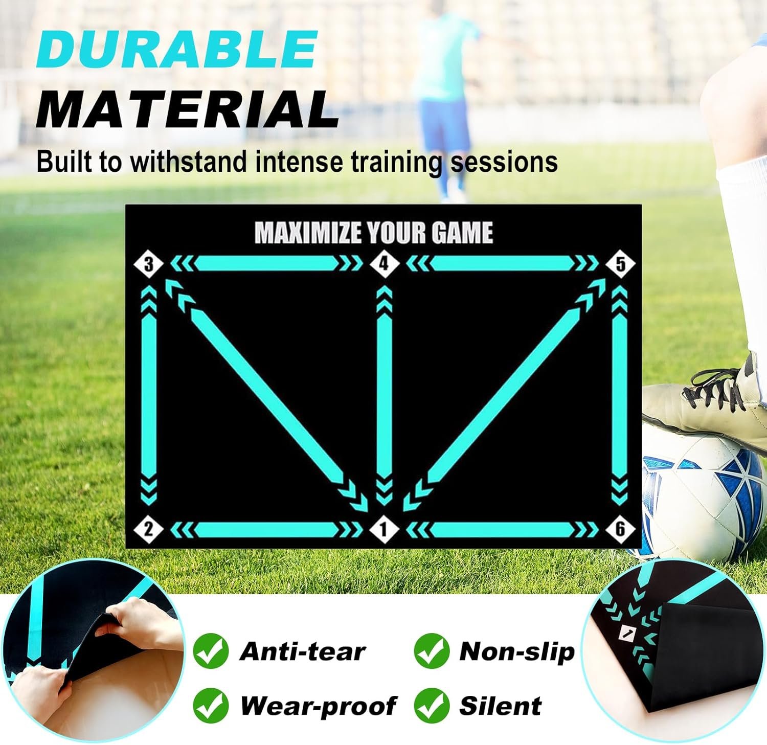 DURABILITY: Our Doskona football footstep training mat is made of diatom earth, featuring excellent wear resistance and easy cleaning. The rubber underside not only ensures anti-slip, but also keeps it silent during training without disturbing others. This design makes the soccer training equipment suitable for both individual and team use, providing you with long-lasting and reliable companionship.