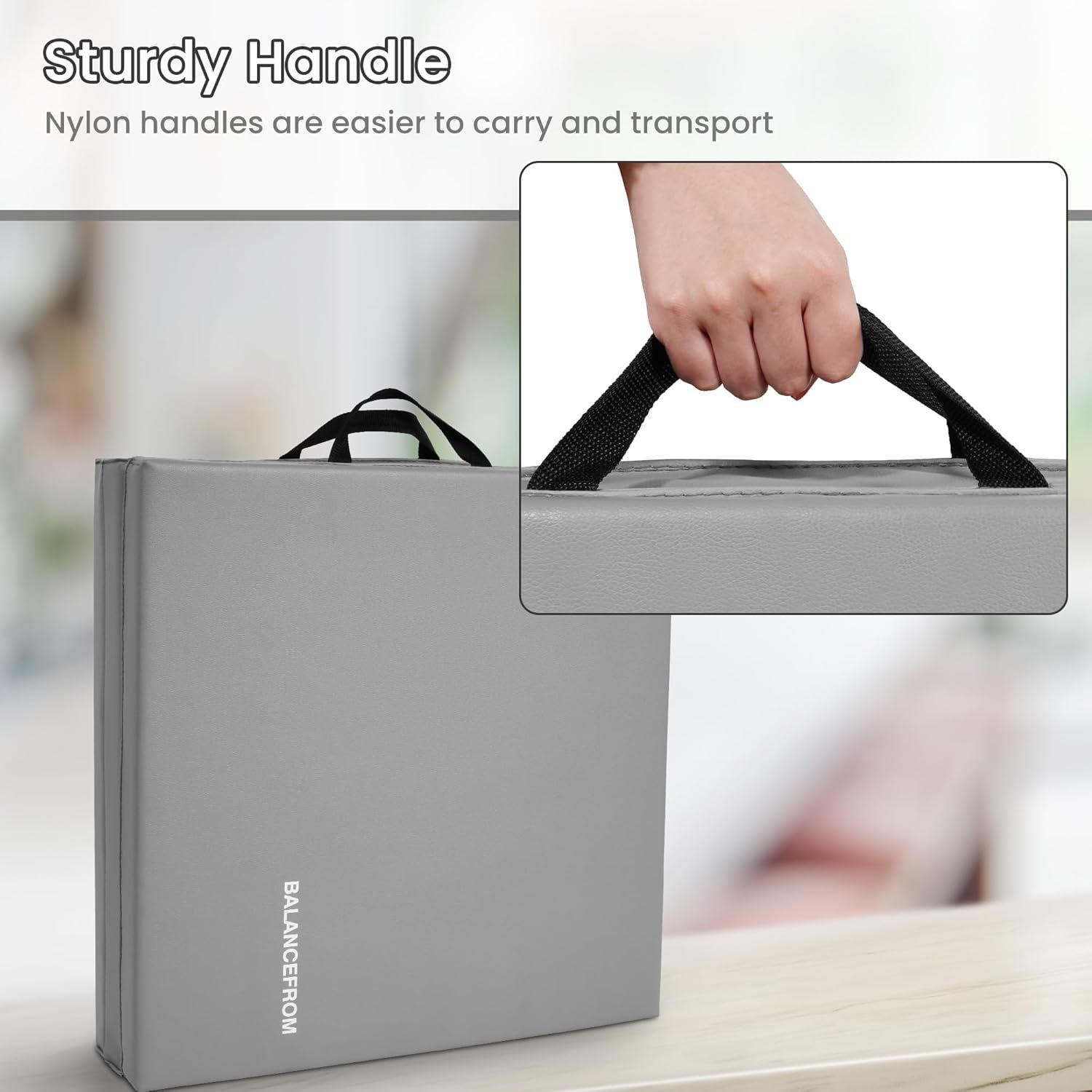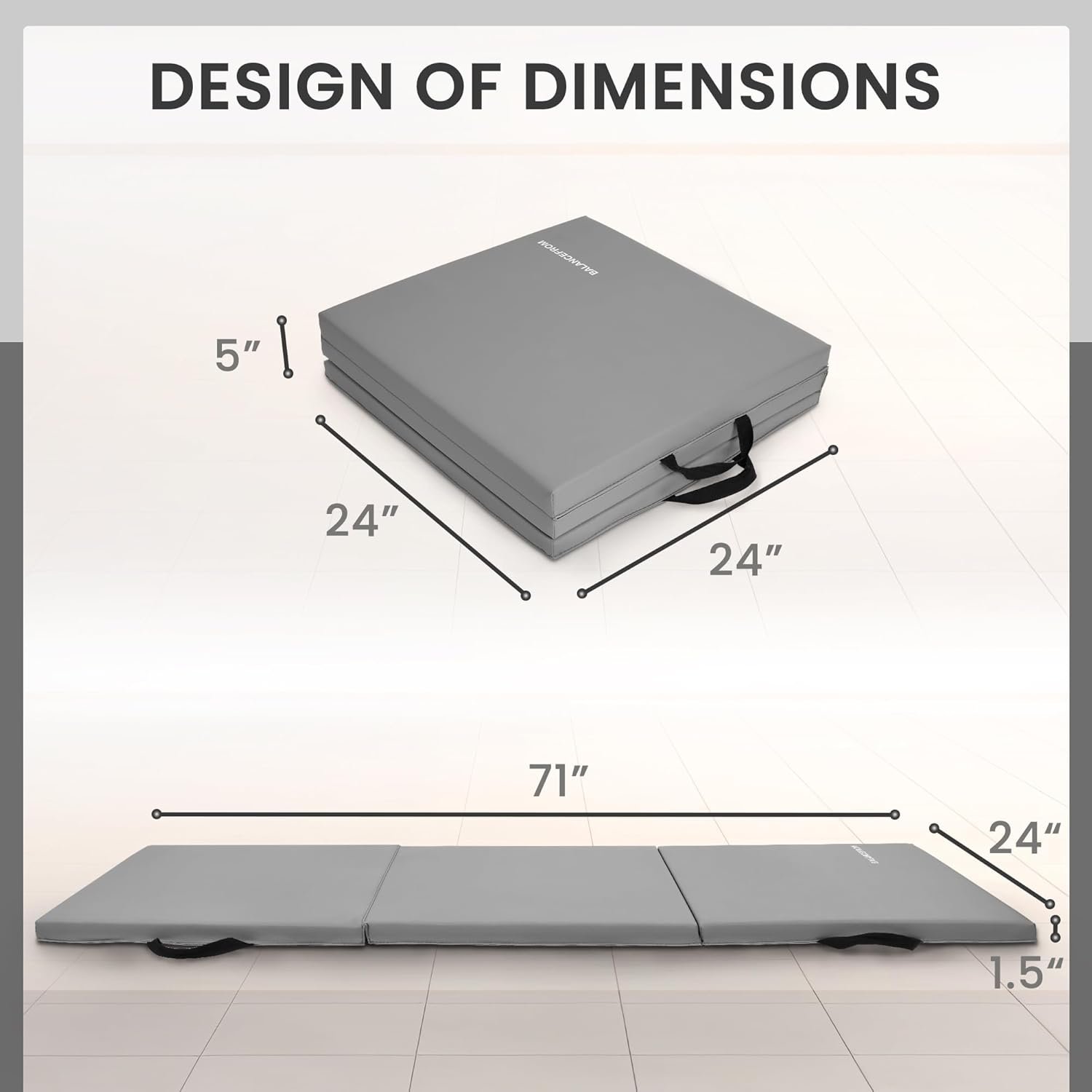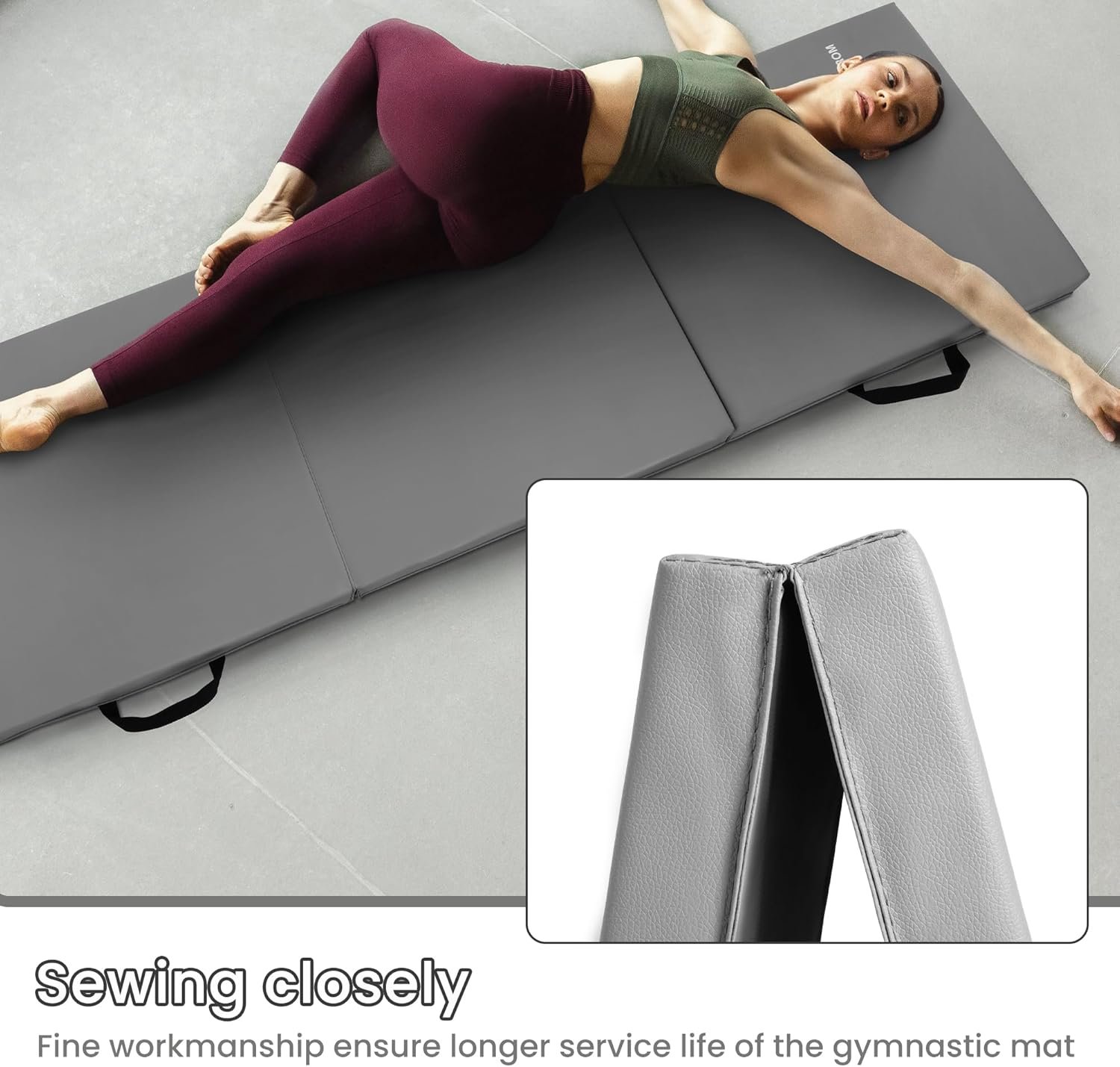 Versatile Exercise Mat: Gray 3-panel 6 ft. x 2 ft. x 1.5 in. folding mat for gymnastics, yoga, Pilates, aerobics, martial arts, and more; offering a safer, cushioned surface for a variety of workouts