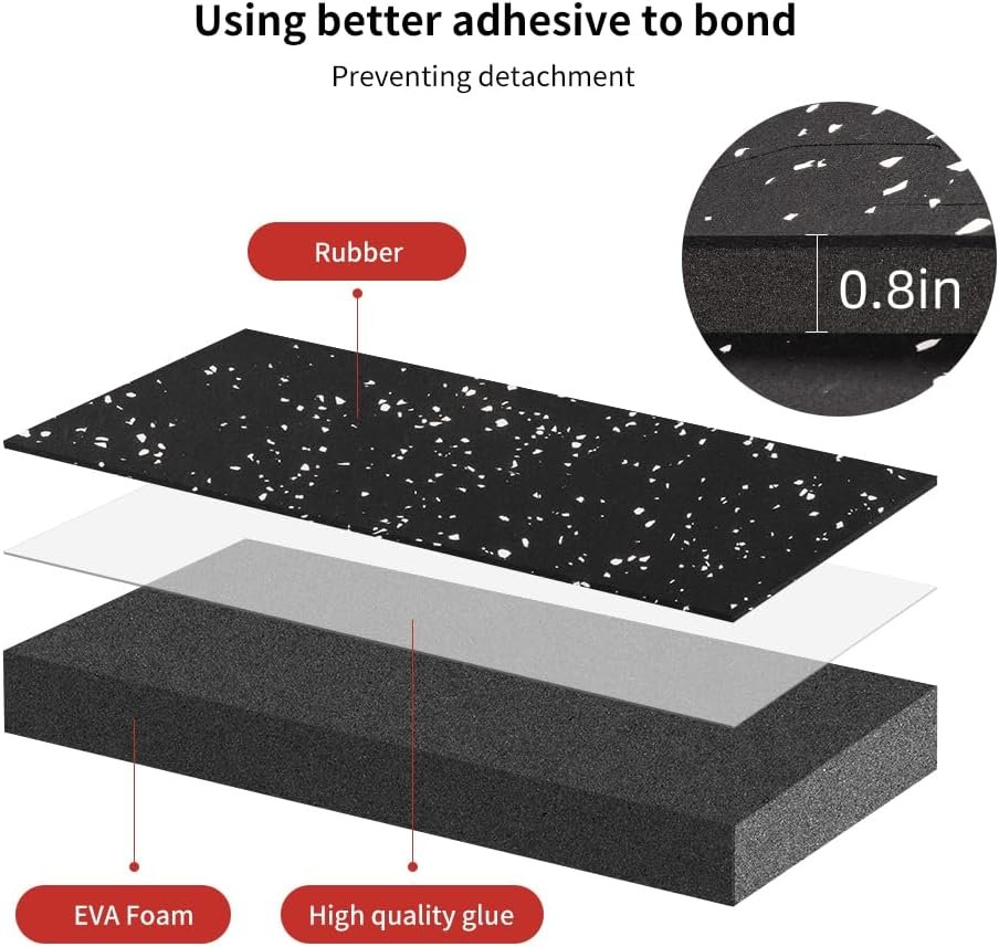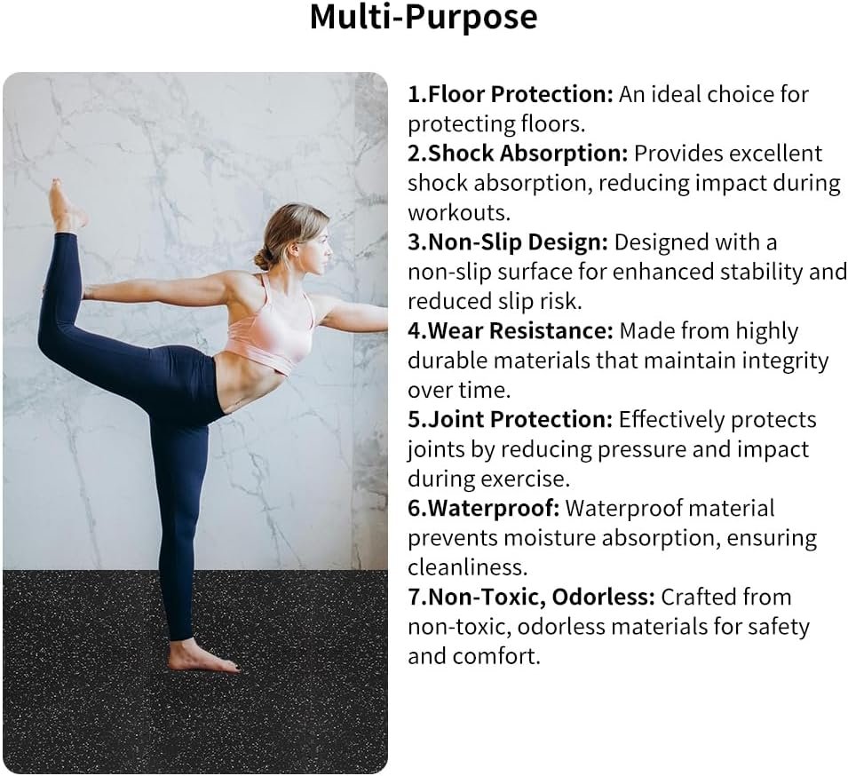 Anti-Slip and Comfort: The rubber layer provides superior anti-slip performance, ensuring stability and safety during each workout. The 0.8-inch thickness design offers comfortable foot support and effectively cushions impacts during exercise.