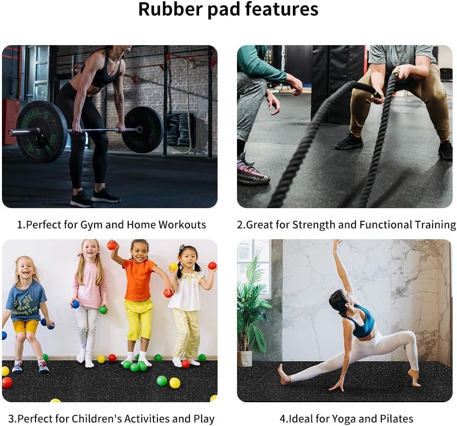 Versatile Use: Ideal for a variety of activities including yoga, bench workouts, treadmill training, CrossFit, kettlebell exercises, and aerobic equipment or regular workouts. Additionally, the rubber tiles are perfect for children’s or babies’ playrooms, and any area in the home that requires extra cushioning and safety. They can be used almost anywhere, such as home gyms, garages, basements, kitchens, or offices, providing a comfortable standing experience whether you’re wearing shoes or not.