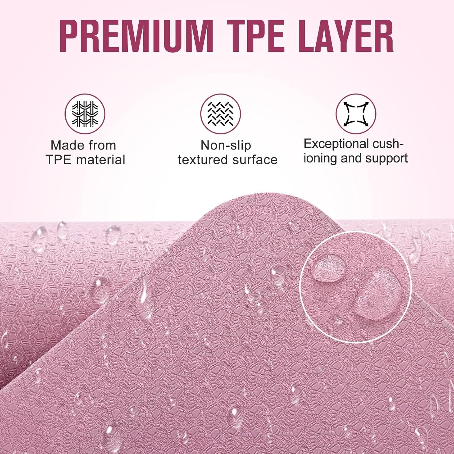 NON-SLIP & ECO-CONSCIOUS: This thick exercise mat combines natural rubber and recyclable TPE for a durable and eco-friendly practice. Its textured surfaces on both sides ensure a secure grip. And the rubber layer provides exceptional grip even during sweaty sessions.