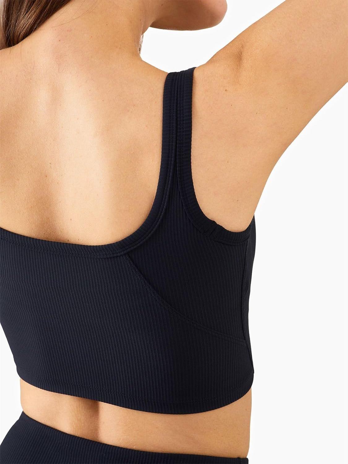 Customers find the sports bra comfortable, well-made, and flattering, with good support for larger chests. They appreciate the ribbed material, with one customer noting it’s breathable. The fit receives mixed feedback – while some say it’s great, others find it runs small and is too tight underneath the armpits.