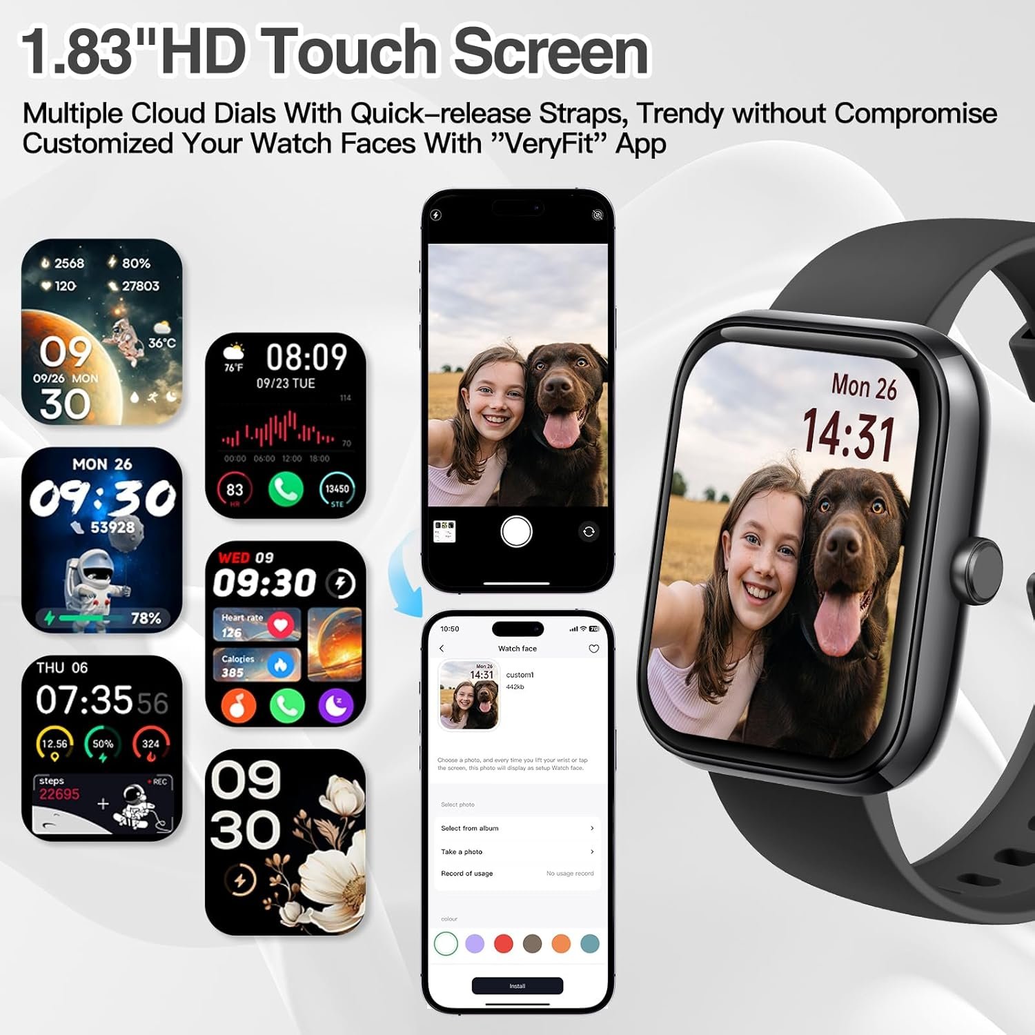 100+ Dials & 1.83″ HD Touchscreen: More than 100 cloud dials are available, covering a variety of styles and occasions, and you can also customize the dials according to your personal preferences. This VeryFit watch has a 1.83” HD touch screen. The screen glides smoothly and is very responsive. And the watch screen has five brightness levels that can be adjusted to suit different environments.