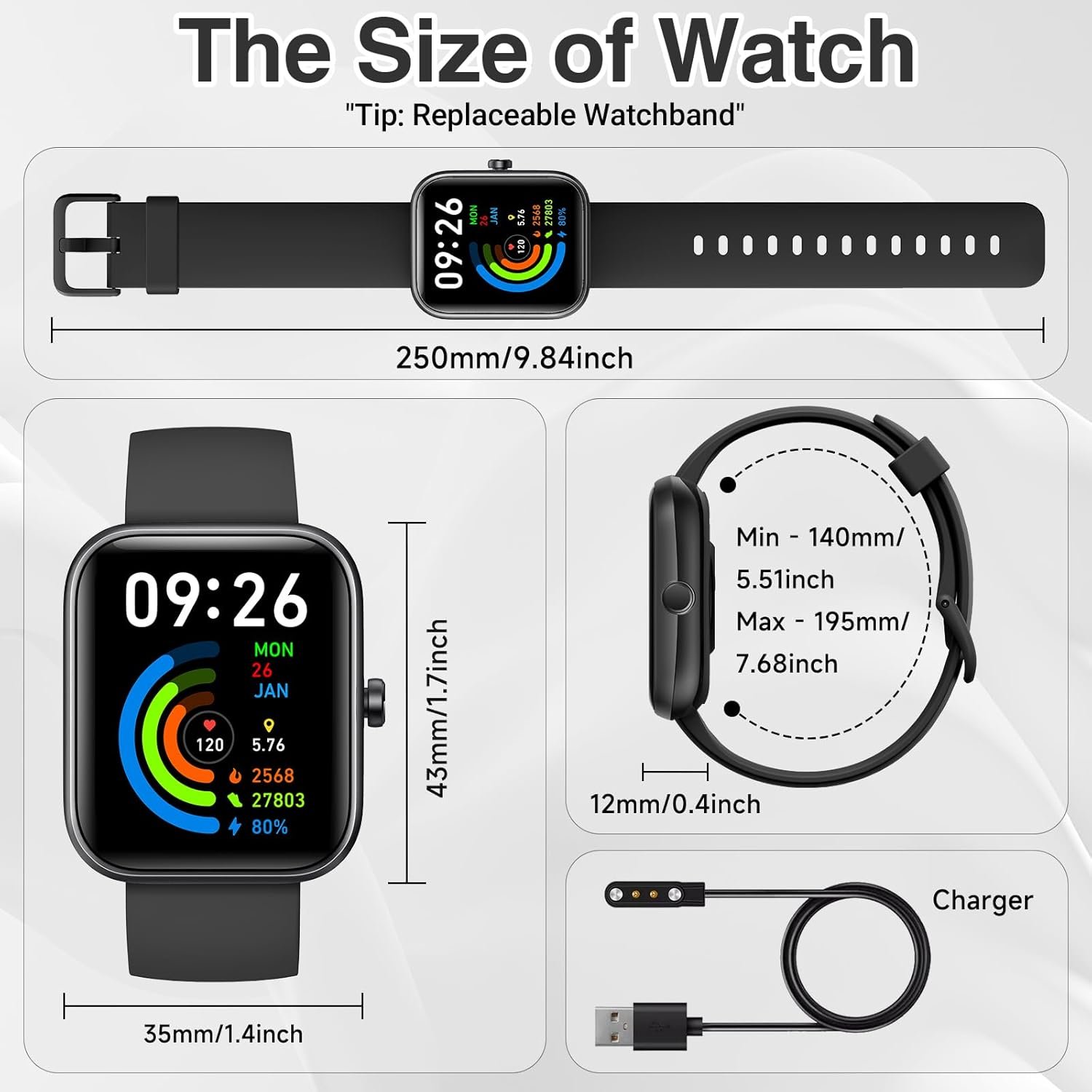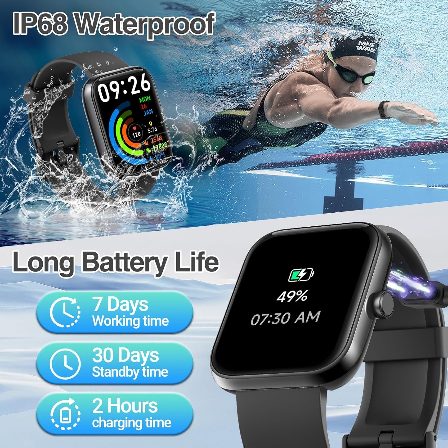 IP68 Waterproof & Long Life Fitness Trackers: IDW25 Smart watch is IP68 rated waterproof, so you can wear it while washing your hands, face or daily sweating without worrying about water intrusion. (Do not use for baths, saunas, hot springs, etc.) Crafted with a 300mAh battery, our smart watch for android balances capacity and efficiency, ensuring up to 5-7 days of active use and 30 days on standby. This waterproof smart watch is compatible with iOS 9.0 / Android 6.0 and above.