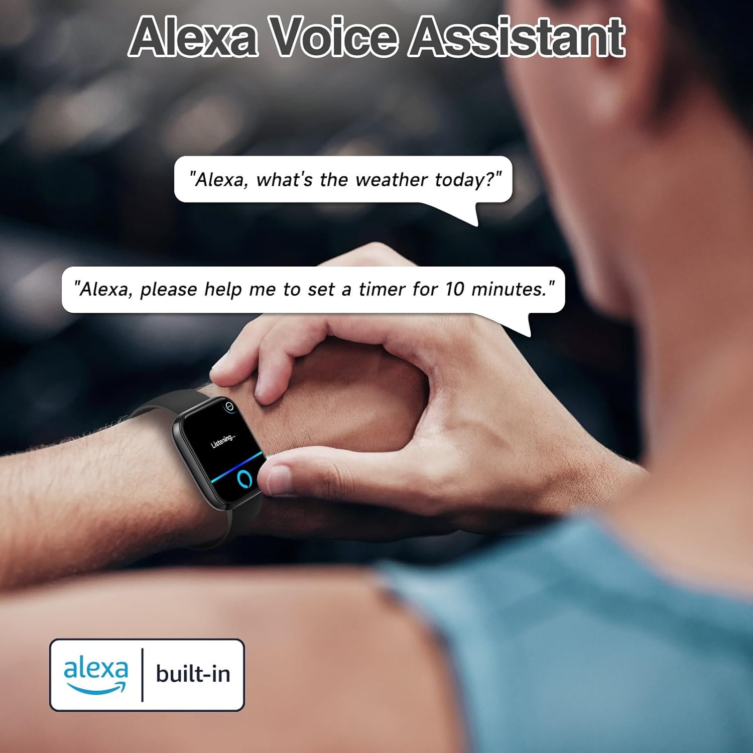 Smart Wrist Watch with Alexa Built-in: The smart watch for men women have built-in Amazon Alexa, providing voice assistance. With Alexa smart watch, you can send command to Alexa to effortlessly check news, weather forecast, set alarms, and control smart home devices such as lights and air conditioning. Having Alexa on your wrist, you will get a personal voice assistant wherever you go.