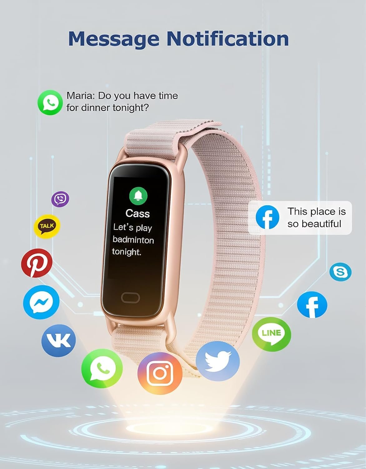 Stay Connected Anytime, Anywhere – Compatible with both men and women, this smart fitness tracker connects seamlessly to your smartphone app. Receive call, SMS, and social media notifications right on your wrist—ideal for busy workdays, workouts, or when your phone is out of reach.