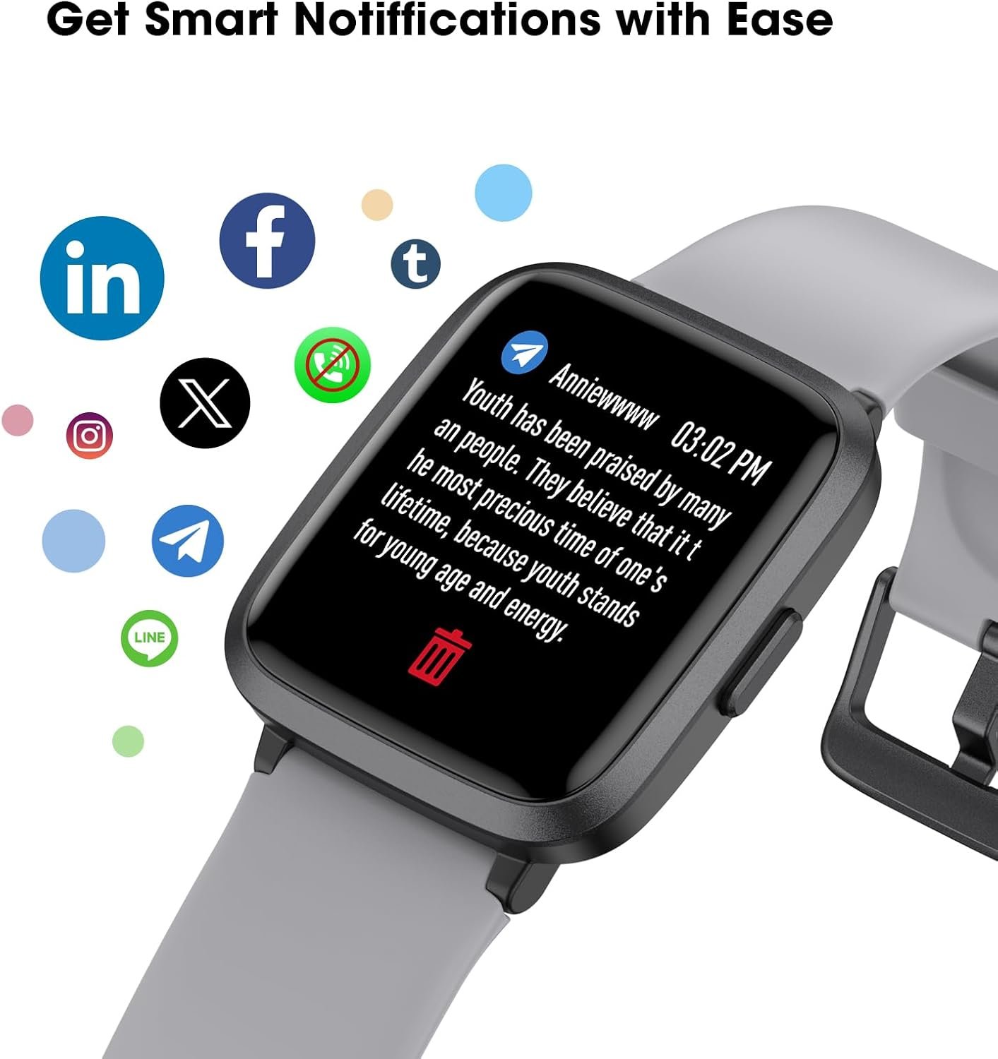 Smart Notification Reminder: You can get SMS messages, and SNS notifications directly on your wrist including Facebook, Twitter, Gmail ect. You won’t miss any important calls and message and stay updated. Please note: the smart watch can not make calls or text.