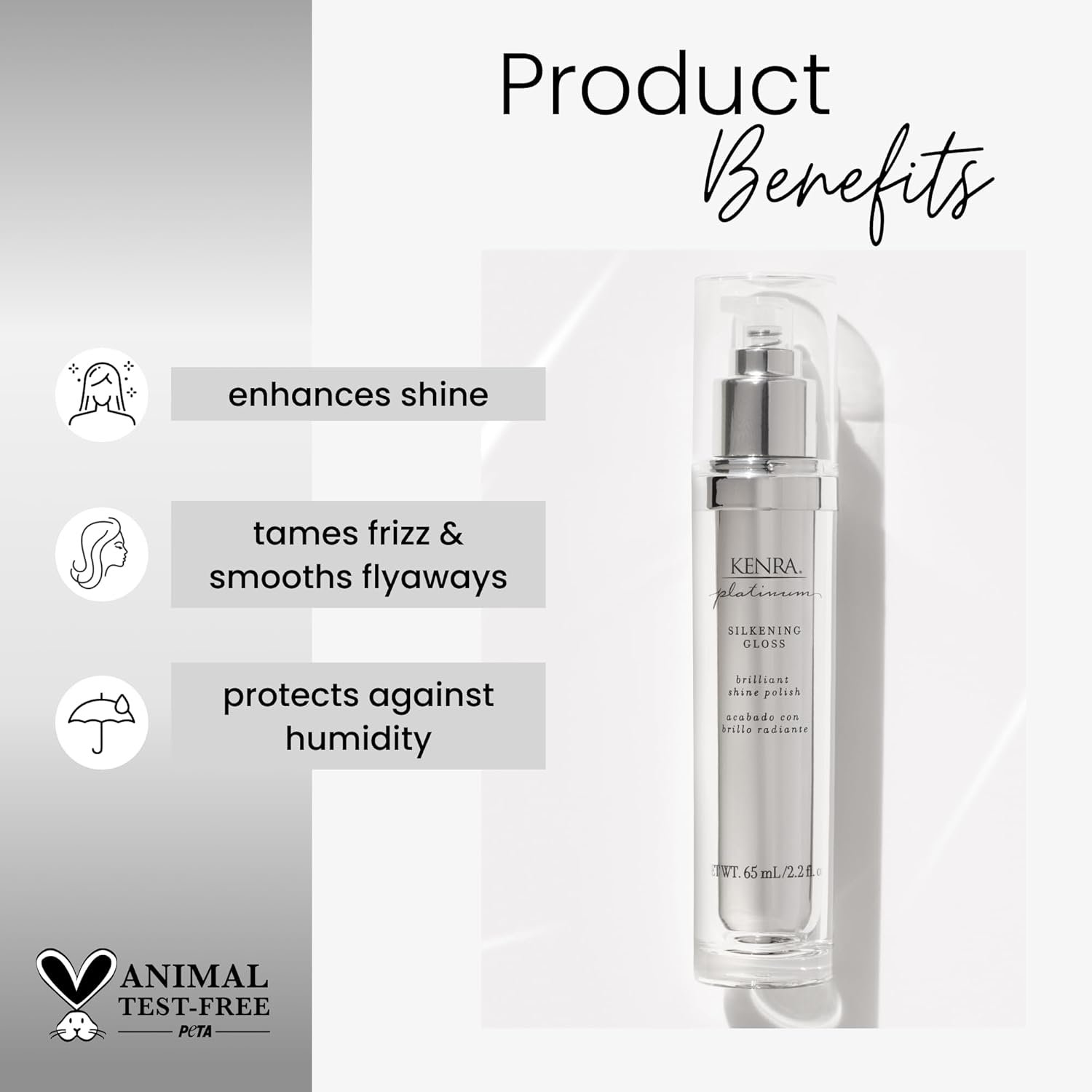 Kenra Platinum Silkening Gloss is a lightweight formula for silky, lustrous hair and skin.
