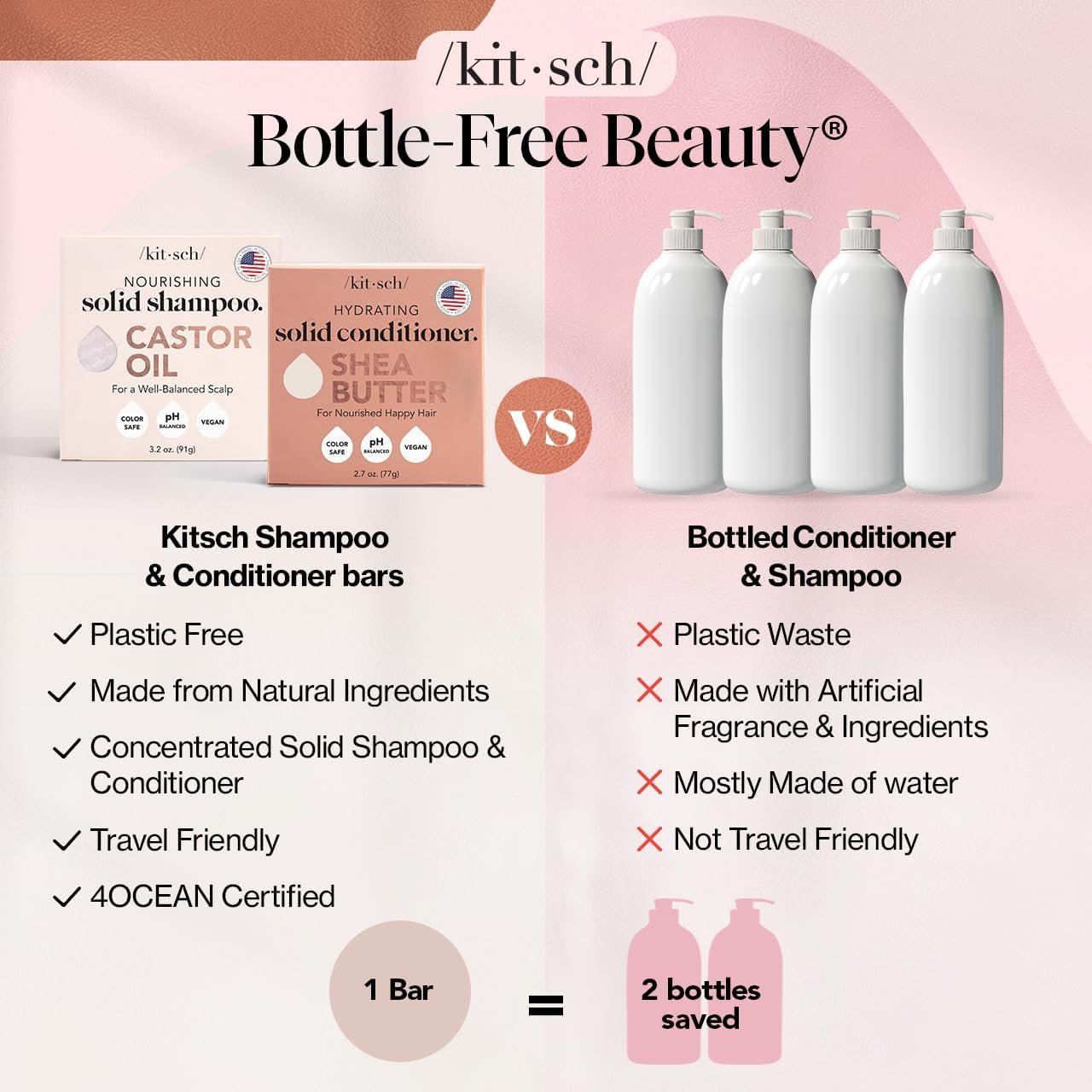 ECO-FRIENDLY SHAMPOO AND CONDITIONER SET THAT REDUCES WASTE: Make the switch to solid hair care bars and help eliminate single-use plastic. Each 2-piece set saves up to two plastic bottles, making it a sustainable alternative to traditional liquid products. Compact, travel-friendly, and long-lasting for everyday use.